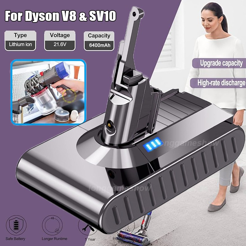 9000mAh V8 for Dyson V8 Battery SV10 V8 Absolute V8 Animal Cordless Vacuum 21.6V