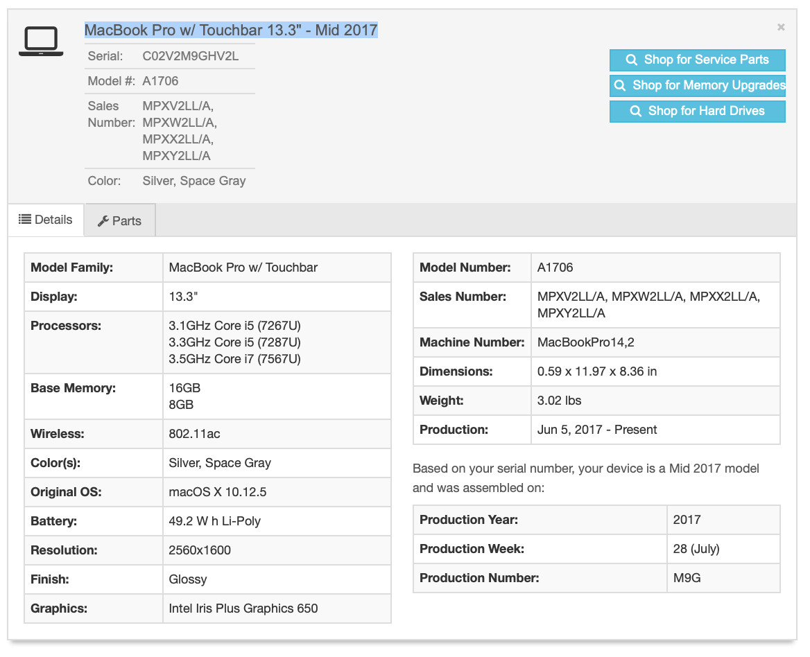 MacBook Pro Touchbar 13 2017 3.1GHz i5-7267U 8GB No SSD No OS