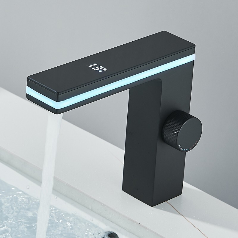Black LED Bathroom Basin Sink Faucet Vanity Mixer w/ Temperature Digital Screen