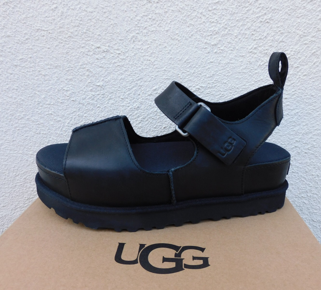 как выглядит UGG BLACK LEATHER GOLDENSTAR HI PLATFORM SANDALS, WOMEN US 6.5/ EUR 37.5 NEW фото