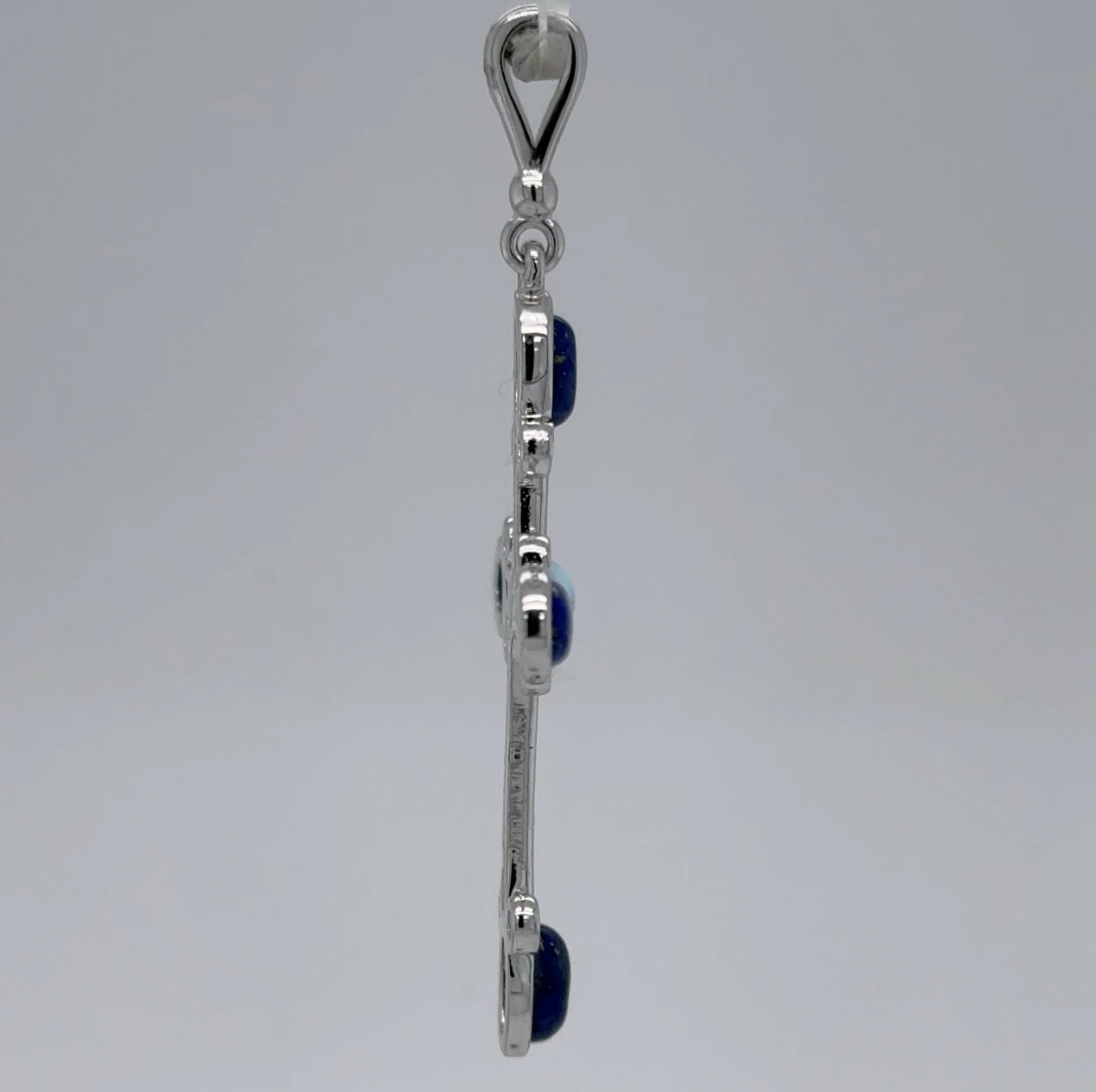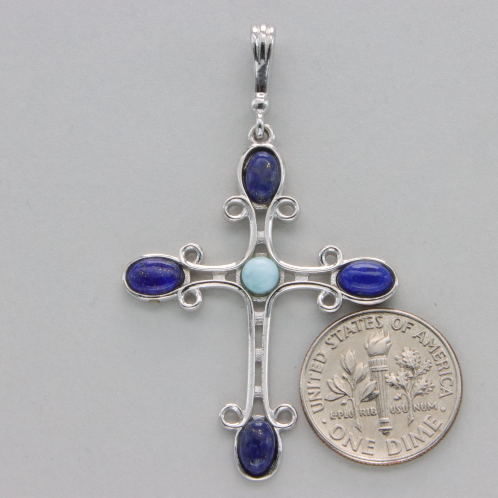 как выглядит Blue LAPIS LAZULI and Larimar Cross Pendant 925 STERLING SILVER Gemstone 902e фото