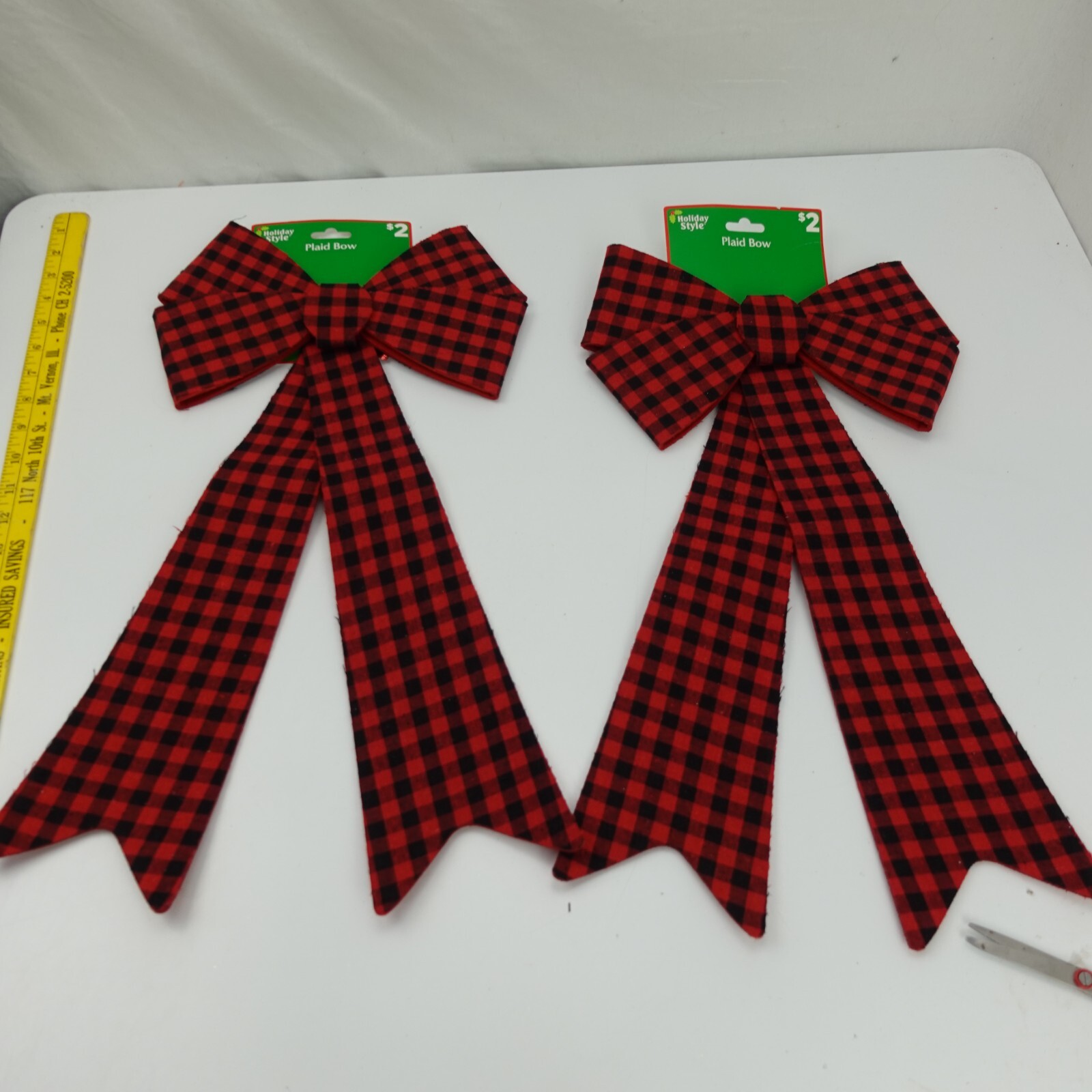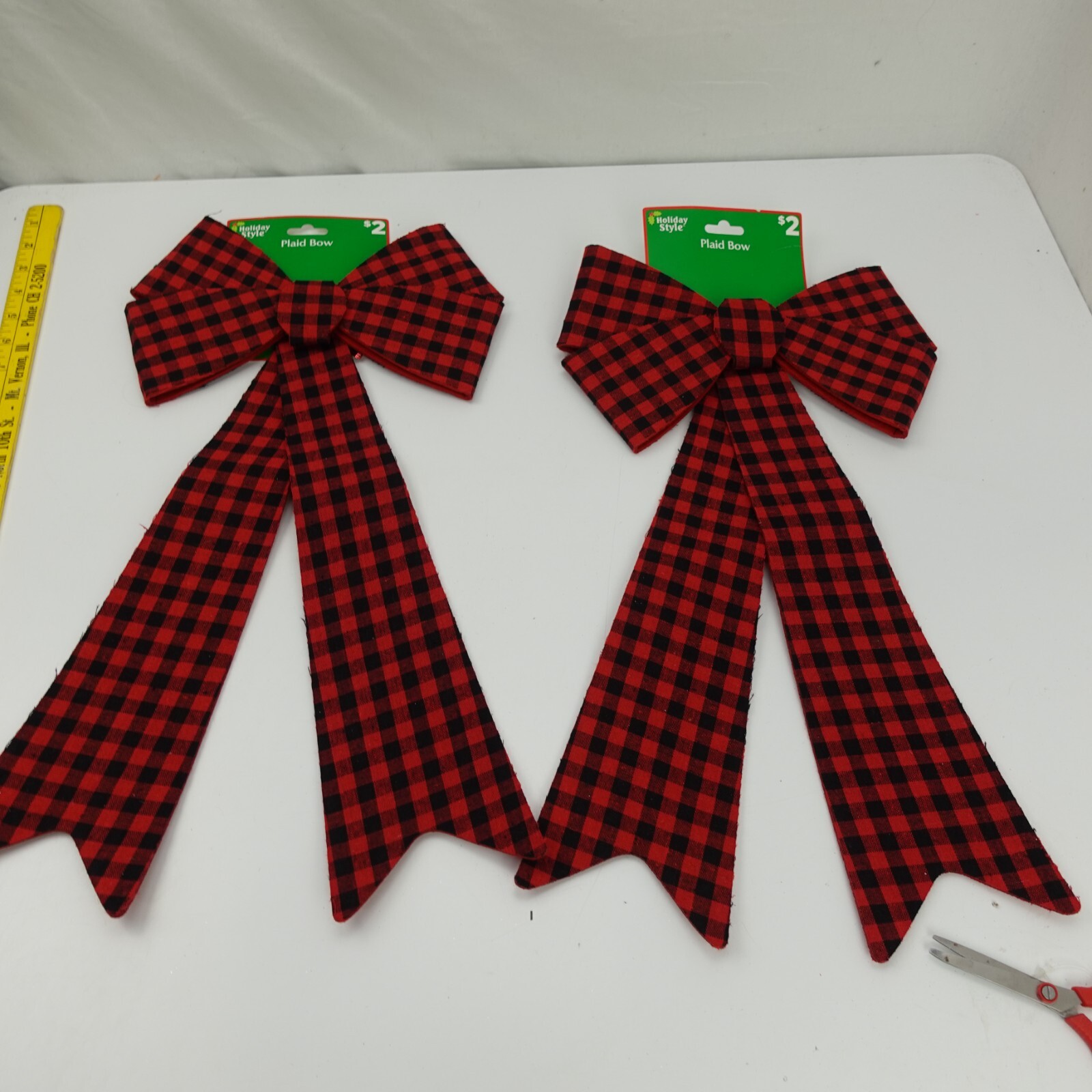 Plaid Red Black Bow Holiday Christmas Decoration New Lot of 2