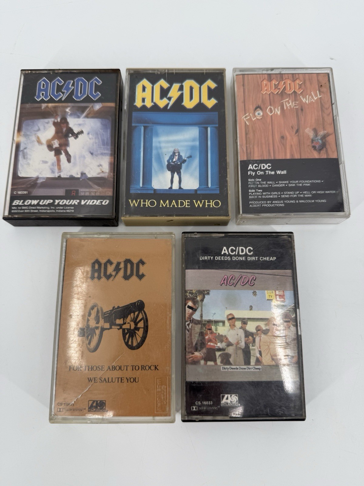 Lot of 5 AC/DC Cassettes Fly On The Wall Who Made Who Blow Up Your Video