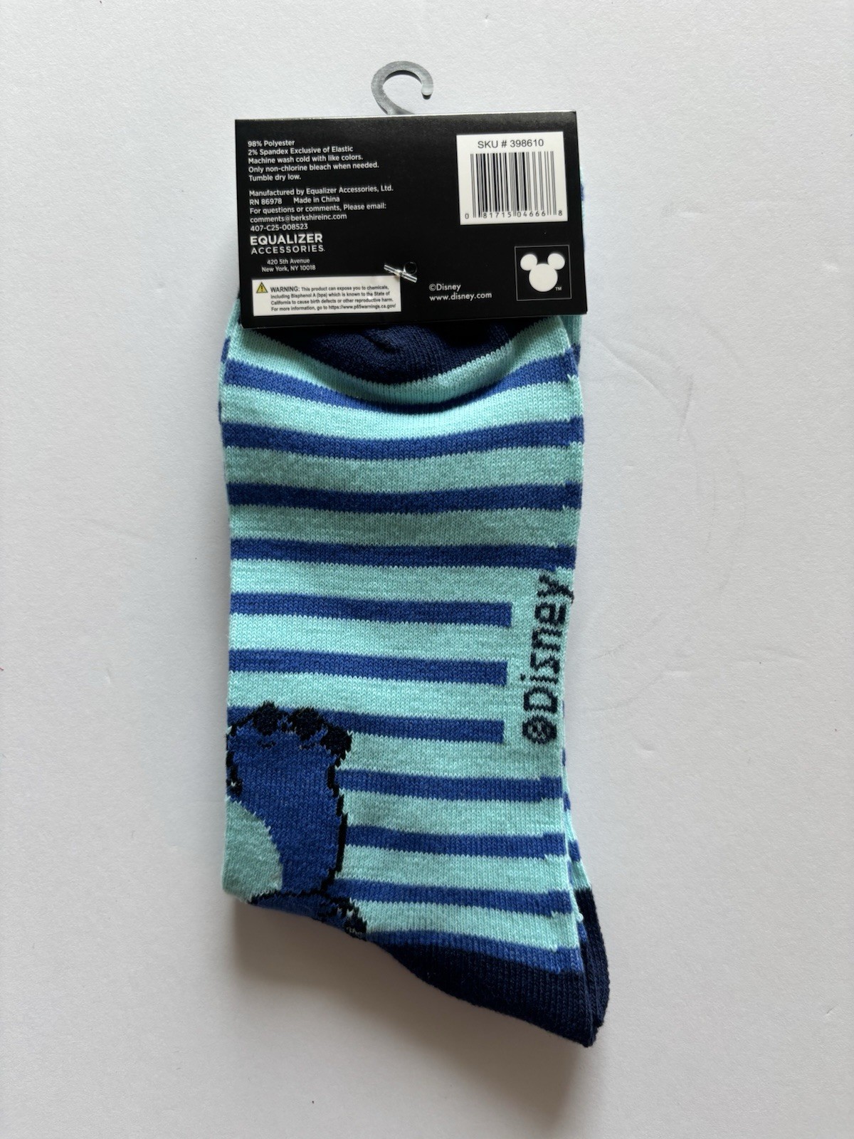 как выглядит Disney Stitch Crew Socks Blue Striped Unisex Size 9-13 Lilo Stitch New NWT фото