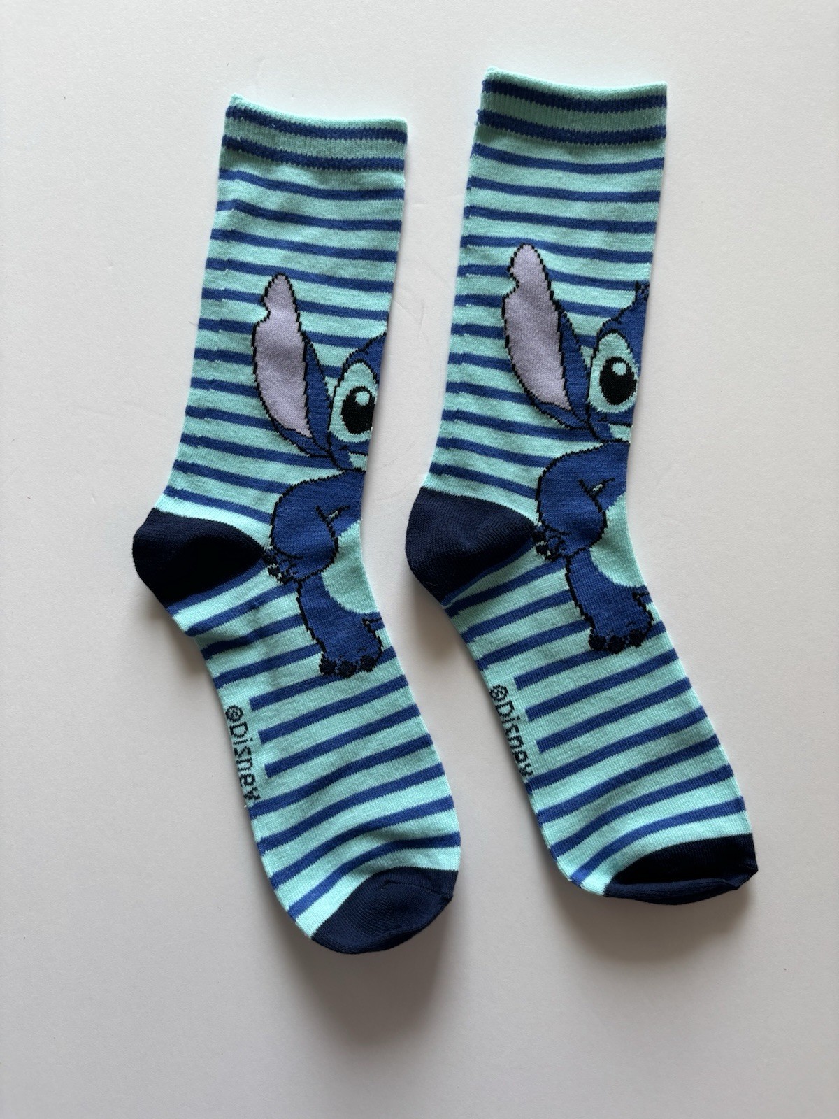 • Disney Stitch Crew Socks Blue Striped Unisex Size 9-13 Lilo Stitch New NWT