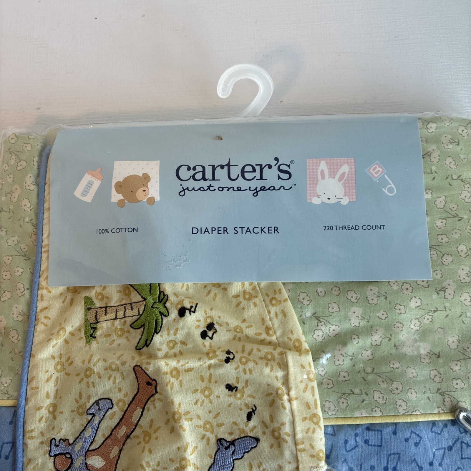 как выглядит Carter s Animals Music Palm Trees Baby Diaper Holder Stacker Blue Green New фото
