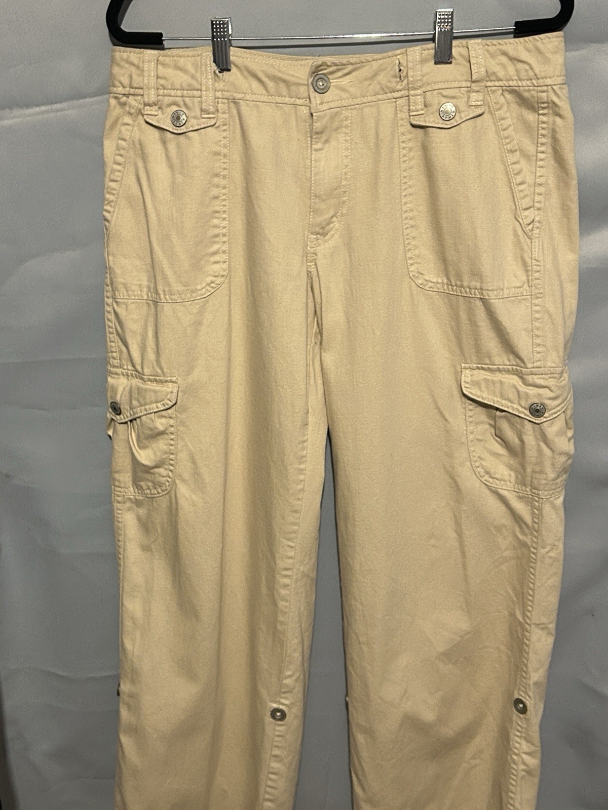 Vin Y2K Wide Leg Cargo Pants Sz12 Roll Tab Leg Tan GrungeRave Kikit Brand Skater