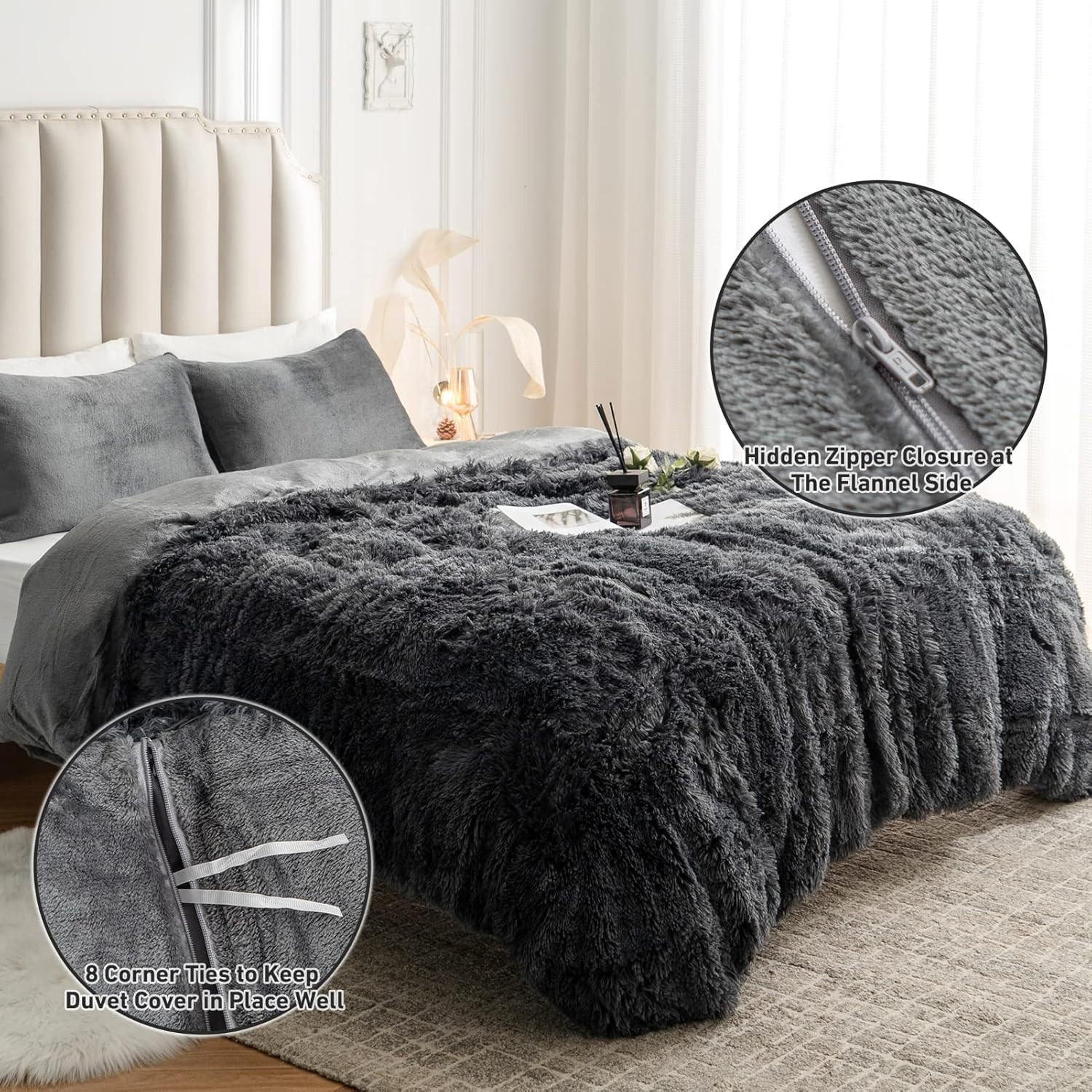 Plush Shaggy Duvet Cover Twin Size, 3 PCS Fluffy Comforter Fuzzy Flannel Bedding