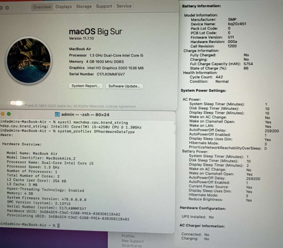 2013 MacBook Air A1466 13 Intel i5-4250U 1.3GHz, 4GB RAM, 128GB SSD, Big Sur
