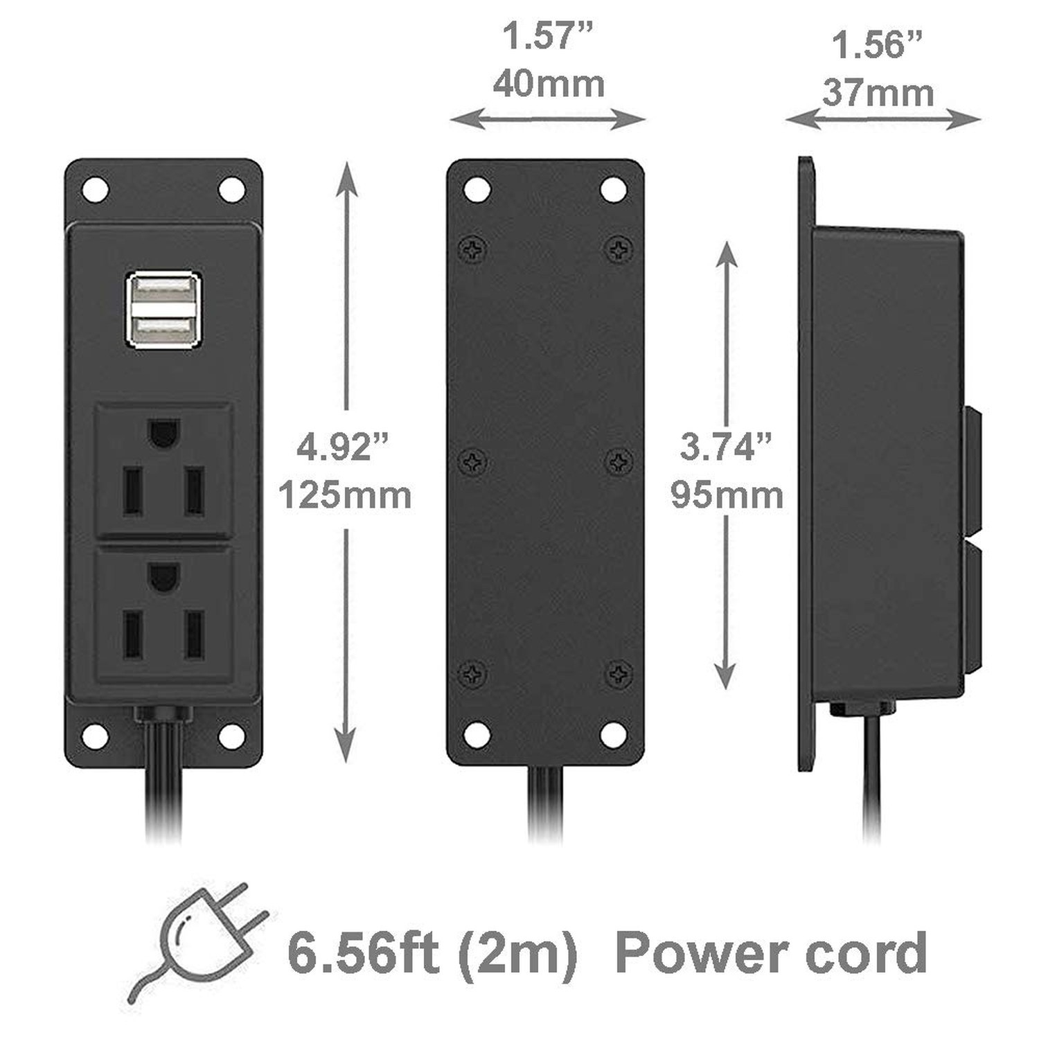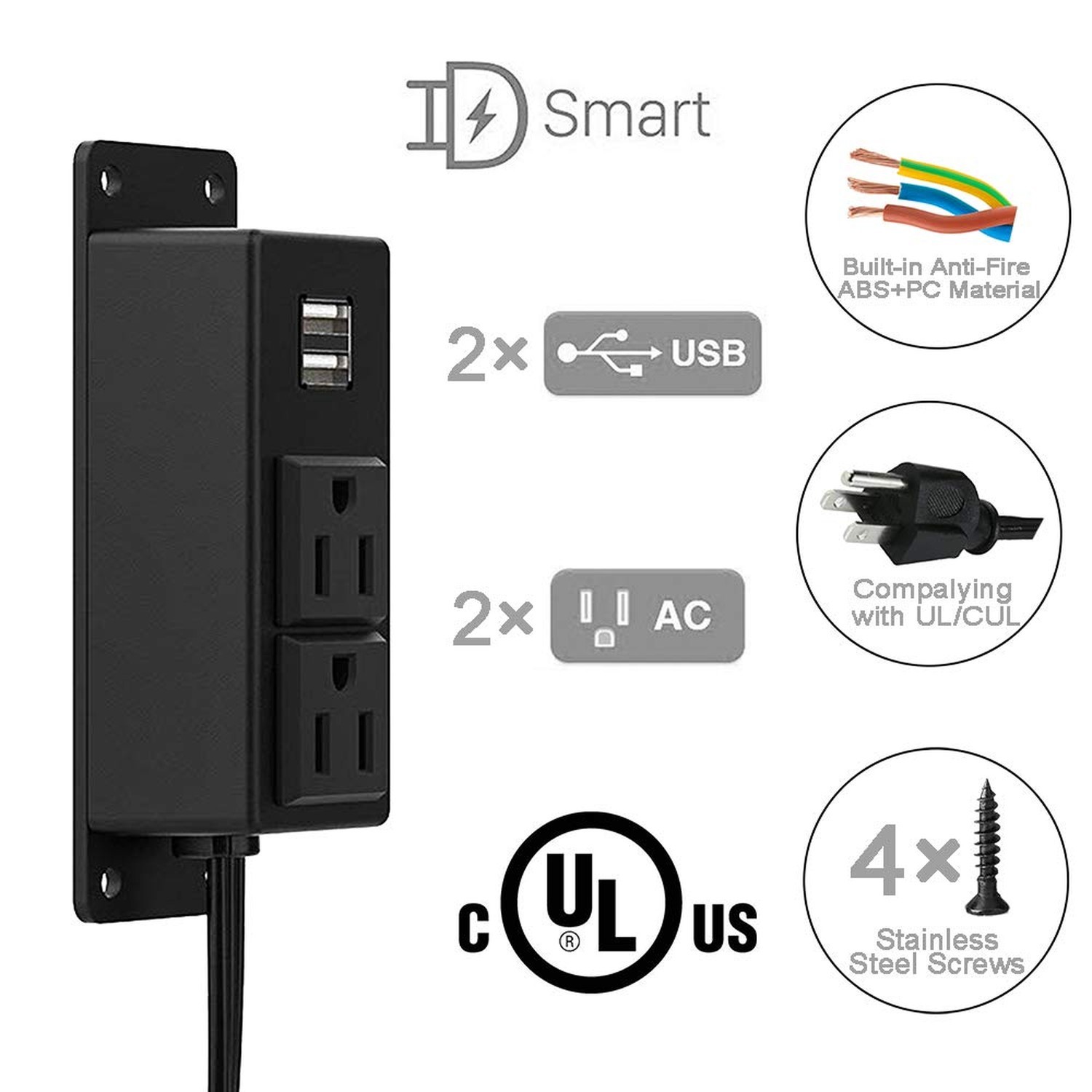 Power Strip with USB Ports, Wall Mounted Power Strip Flat Plug, 2AC Outlet 2 ...
