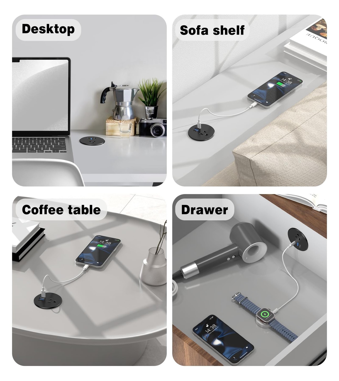 2 Pack Desk Grommet Power Outlet, 2.5 inch Desktop Recessed Outlet with 20W F...