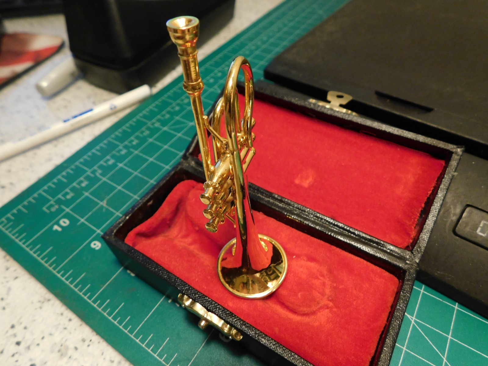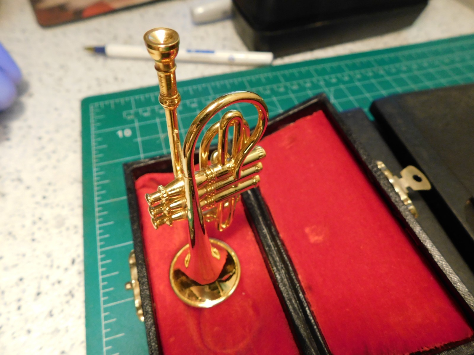 Replica Combination Master Trumpet Brass Miniature Music Instrument 3.5 w/ case