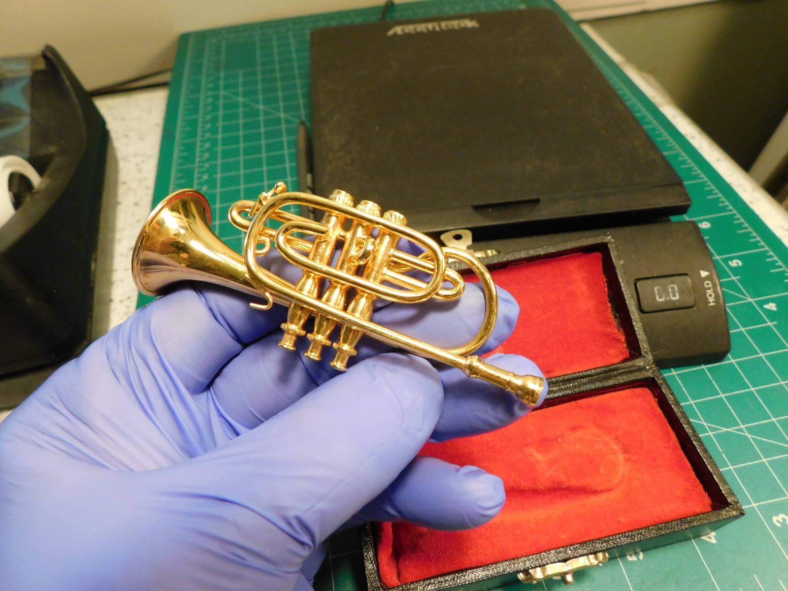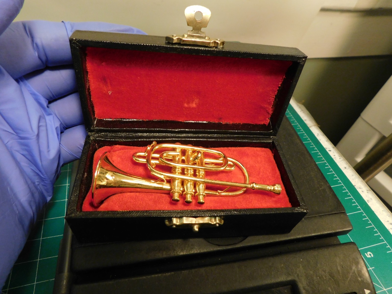 как выглядит Replica Combination Master Trumpet Brass Miniature Music Instrument 3.5" w/ case фото