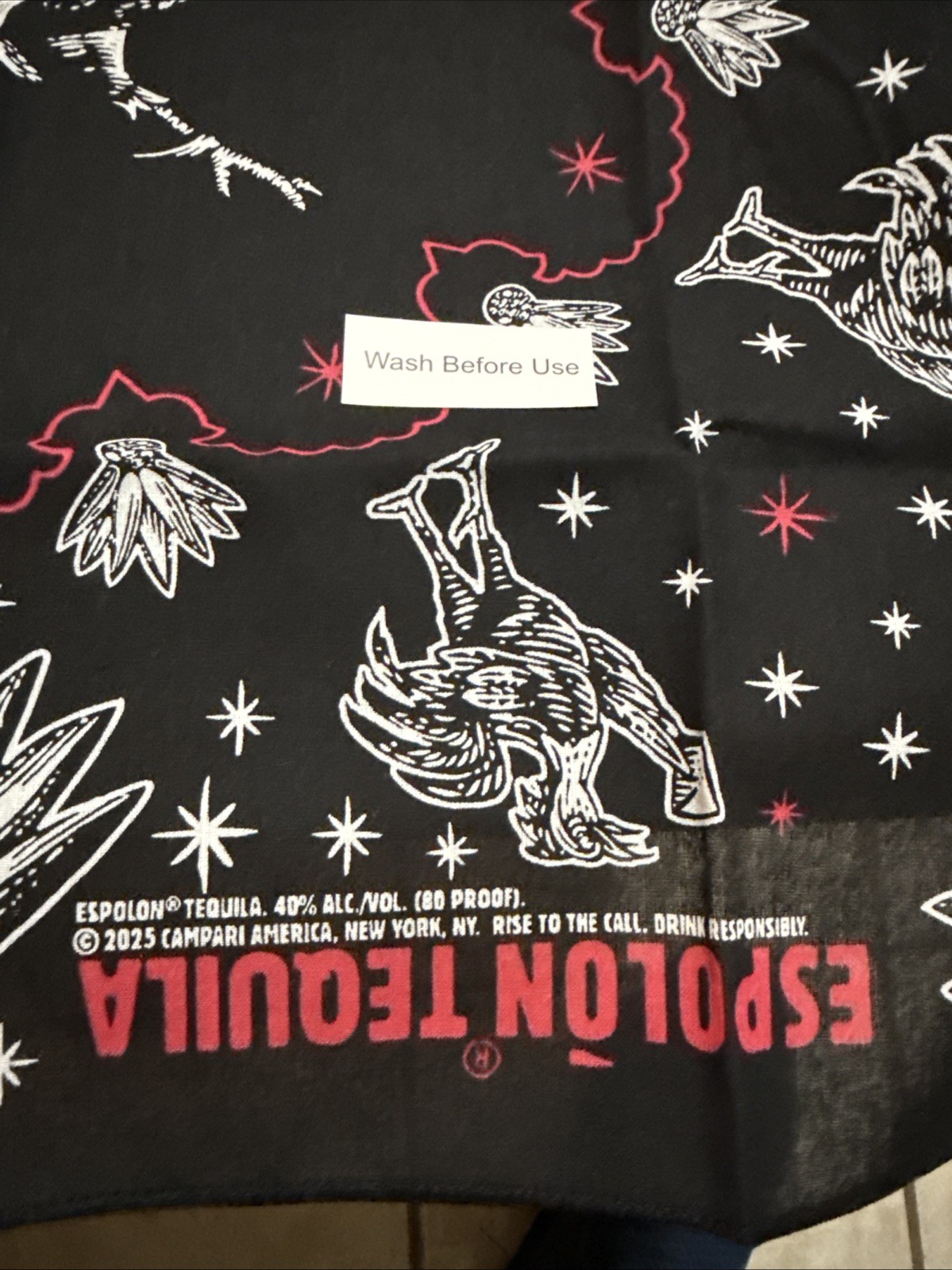 как выглядит Espolon Tequila Handkerchief/Bandana Skeleton/Red Letters 21" x 21" Lot Of 10 фото