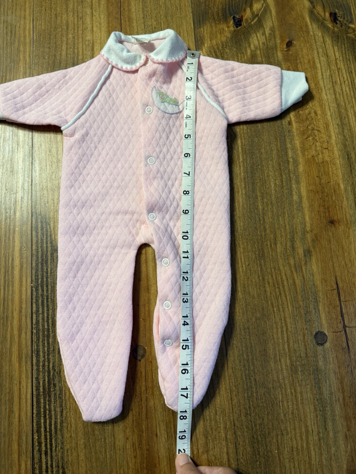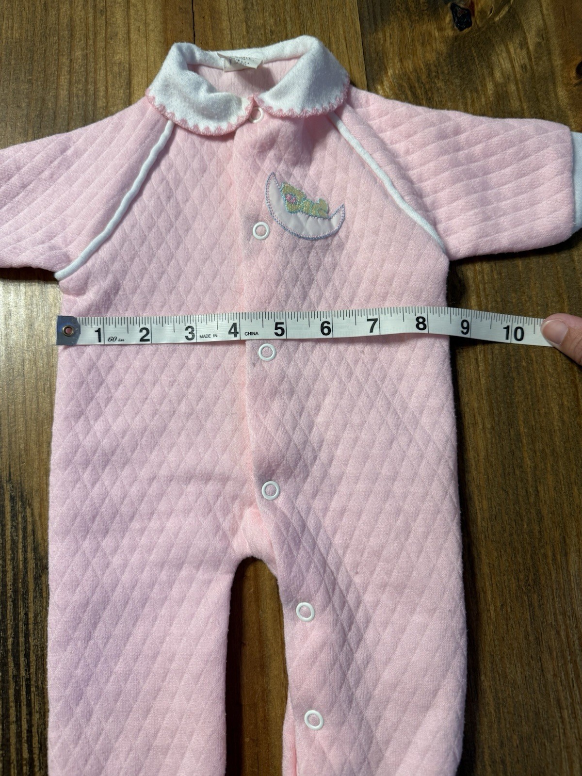 Vintage Baby Girl Quilted Pink Sleeper Footie Bear Moon Size Small