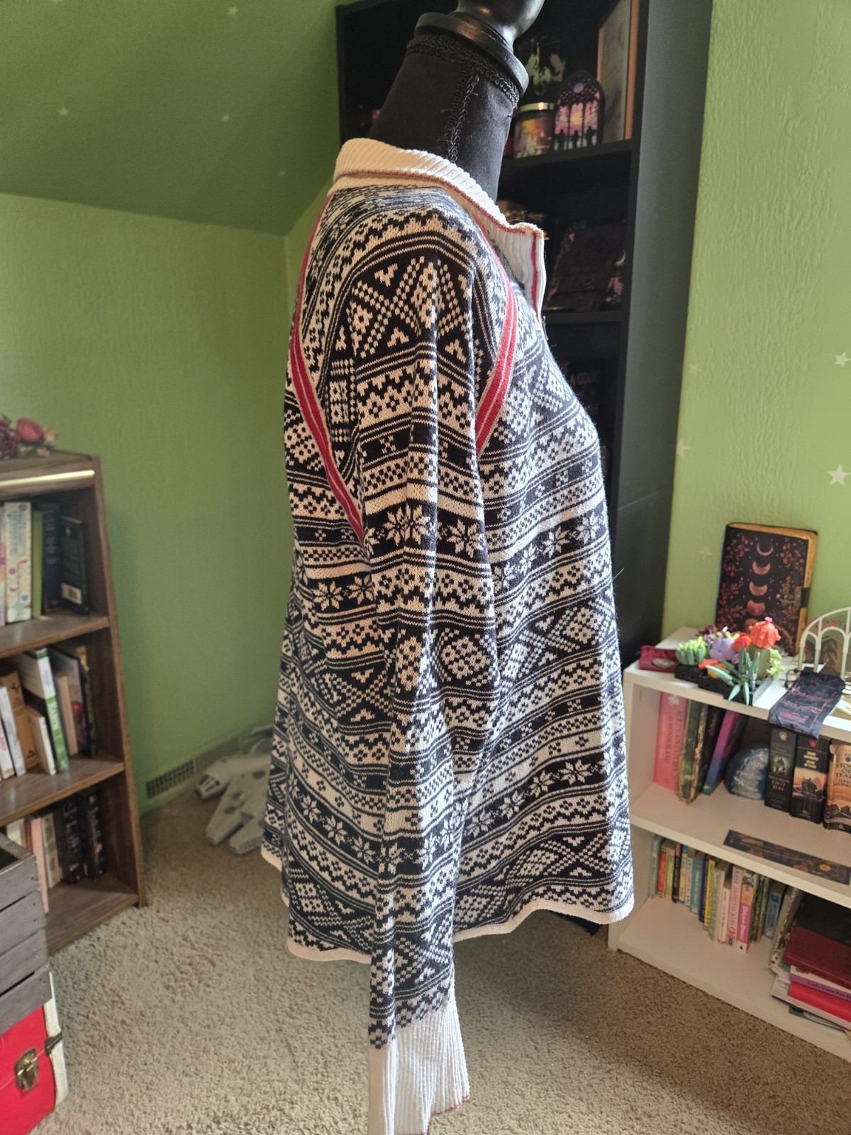 Eddie Bauer Sweater Womens Large Black White Red Engage Fair Isle 1/4 Zip