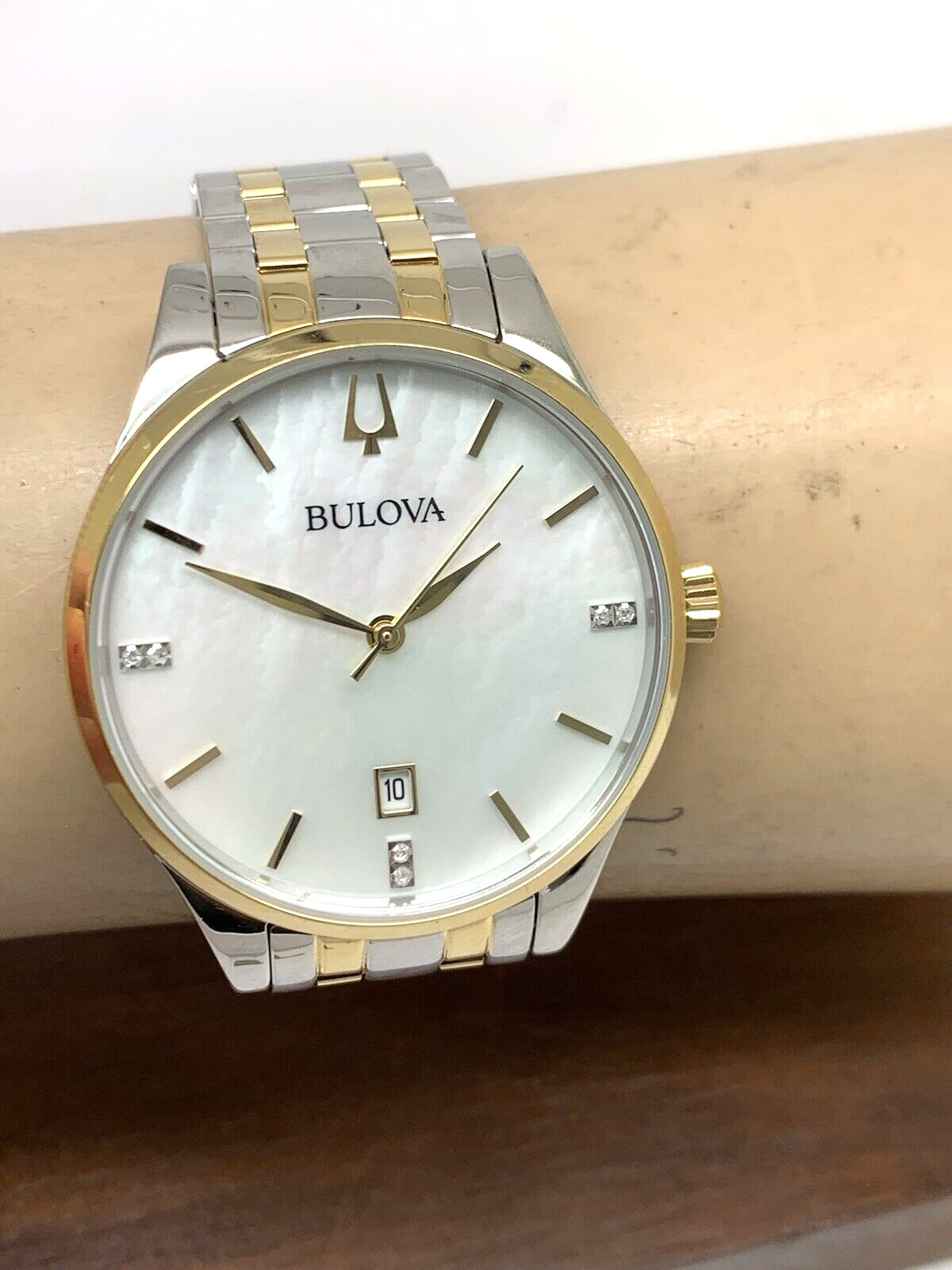 Bulova Women's Watch 98P201 Quartz Diamond Mother of Pearl Dial Two Tone 36mm