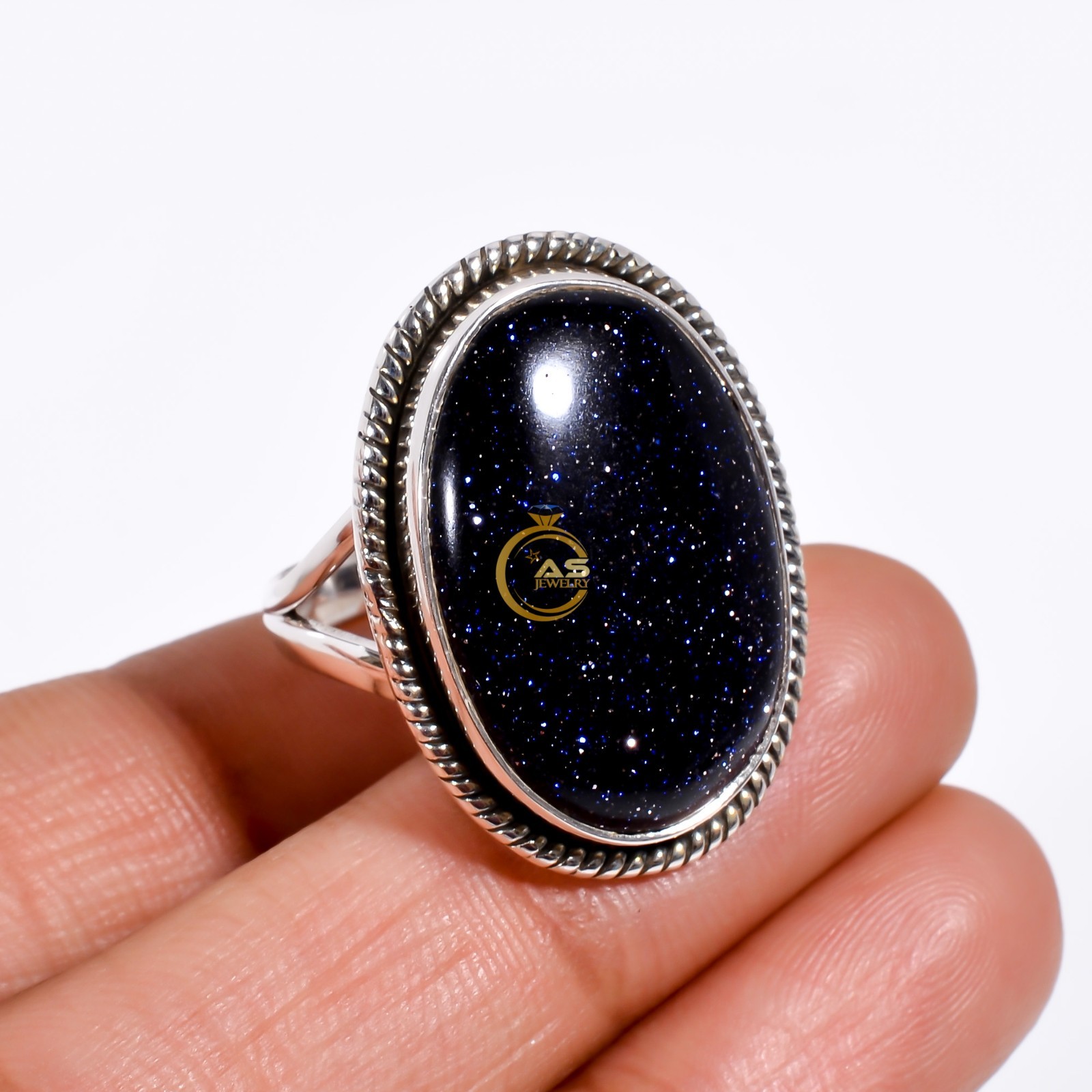 как выглядит Blue Sunstone Ring 925 Sterling Silver Handmade Rings Jewelry Gift for Wife фото