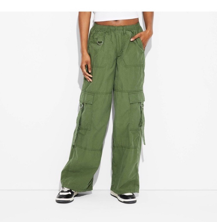 как выглядит Wild Fable Mid Rise Wide Leg Green Lightweight Cargo Pants S фото