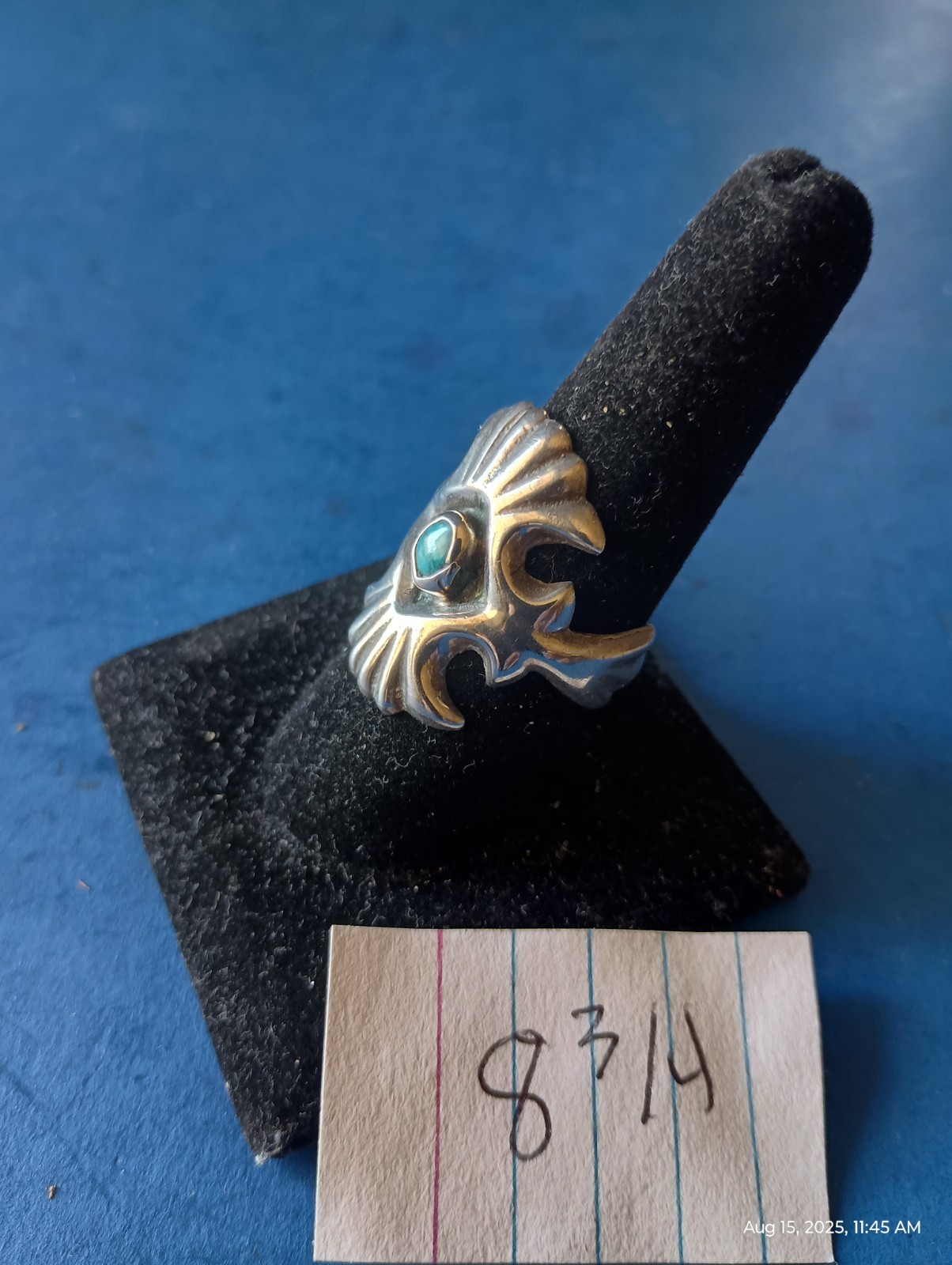 Vintage Native American Sterling With Turquoise Ring size 8 3/4