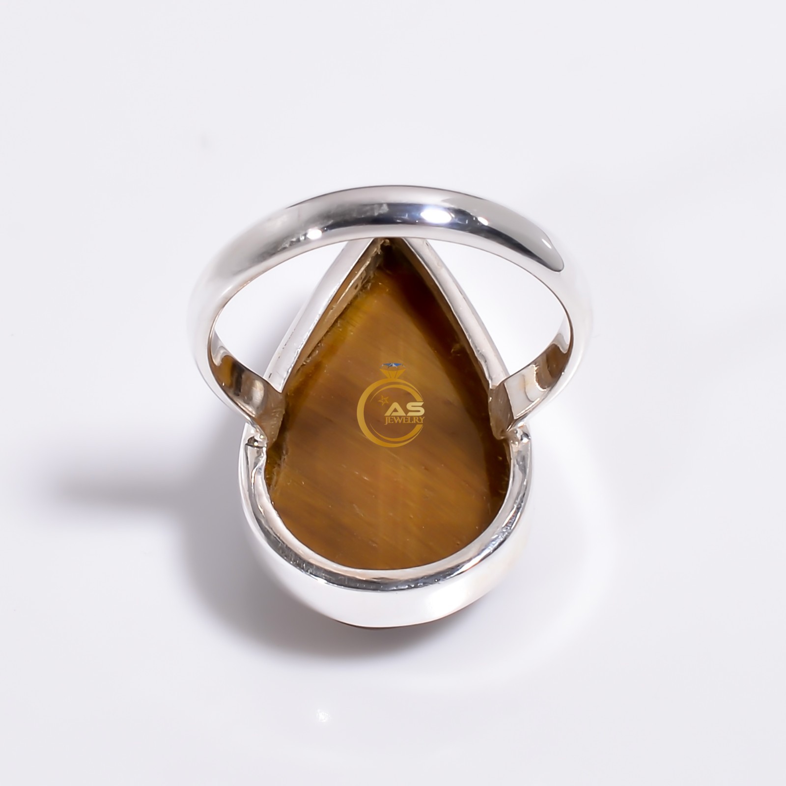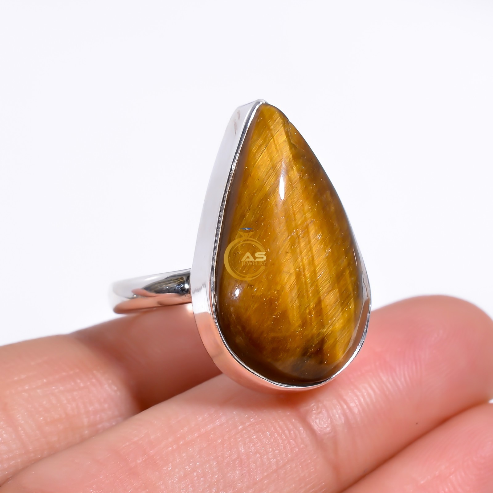 Natural Yellow Tiger Eye Ring 925 Sterling Silver Handmade Boho Rings Jewelry