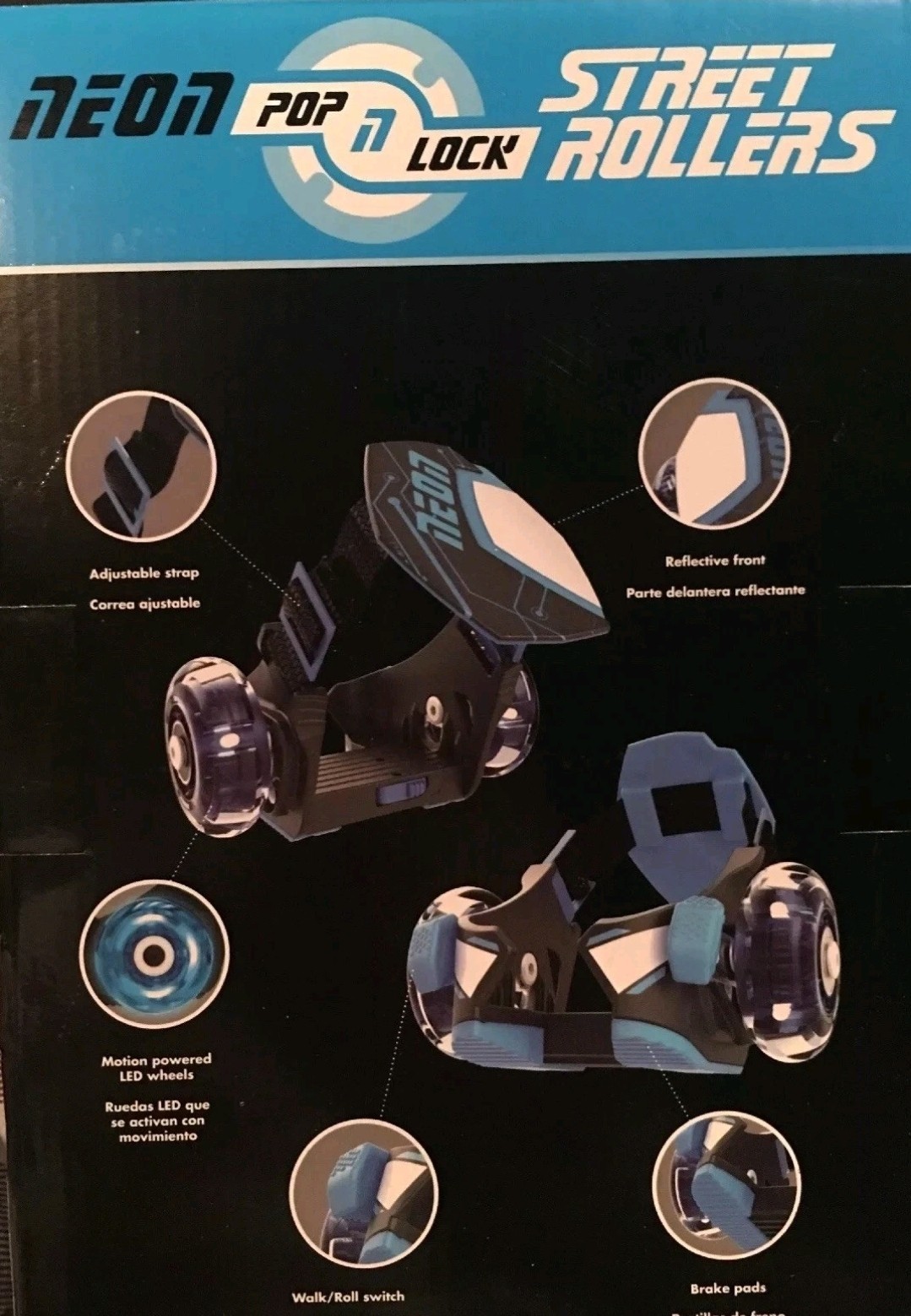 Neon Pop 'N Lock Blue Street Rollers LED Wheels Adjustable Straps
