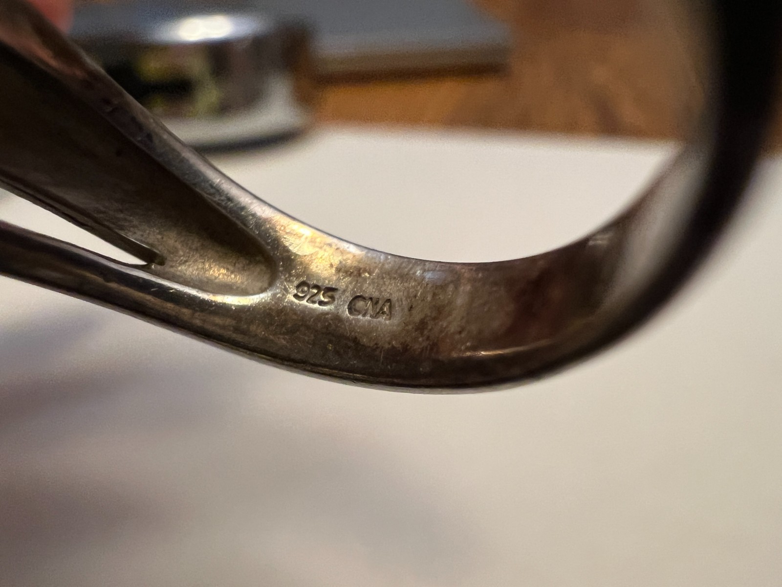 как выглядит Vintage Sterling Silver Black Onyx Mother of Pearl Inlay Ring - Sz almost 6 фото