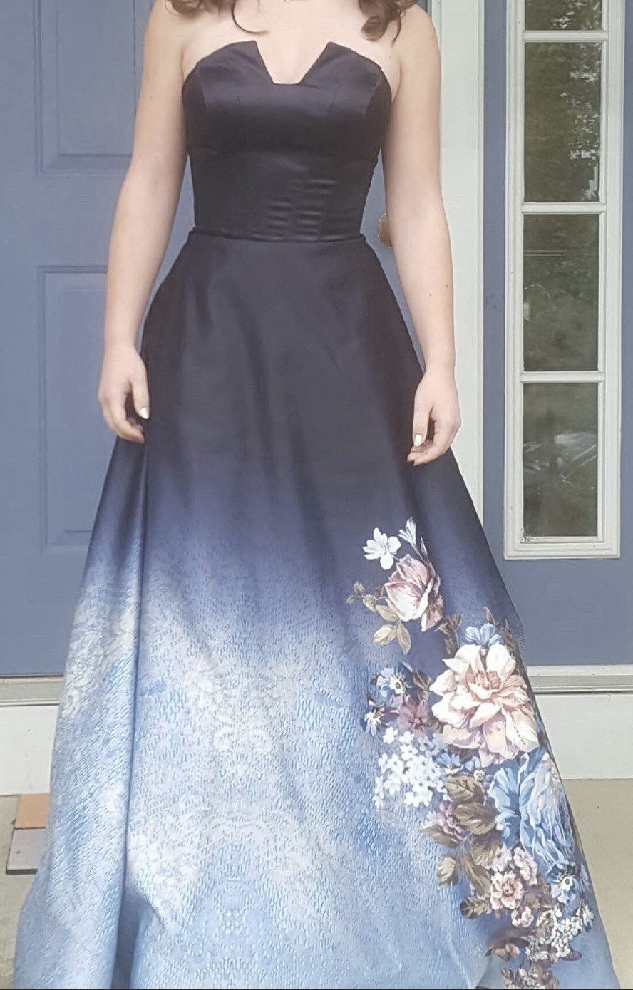 как выглядит Tarik Ediz Blue Floral Gown Size 6 - Style 92814 Pre-owned фото