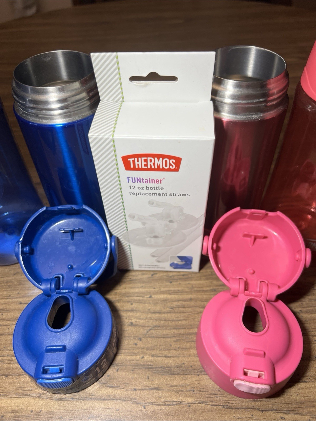как выглядит Thermos 12 Oz. Funtainer Lot Of 4 With Replacement Straws фото