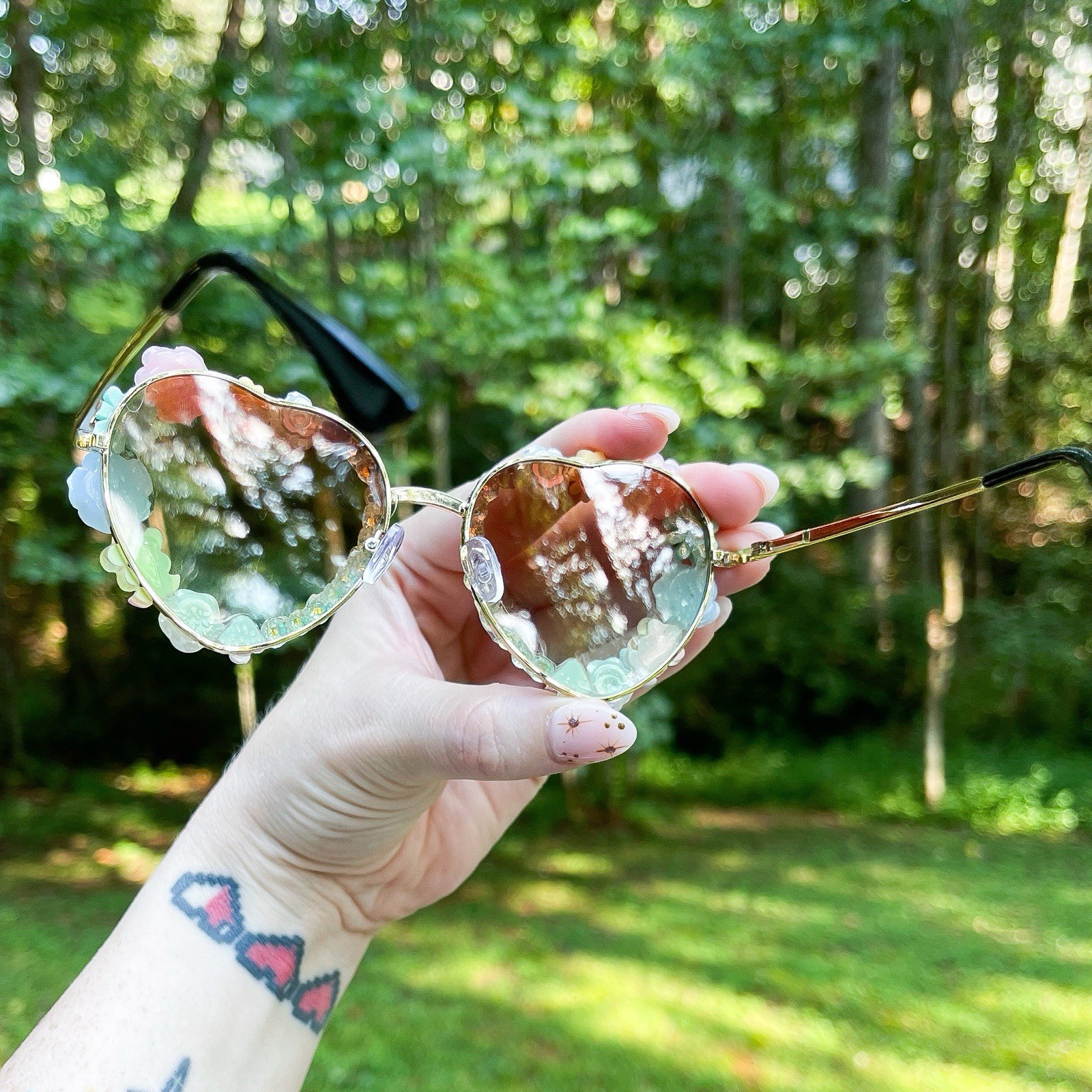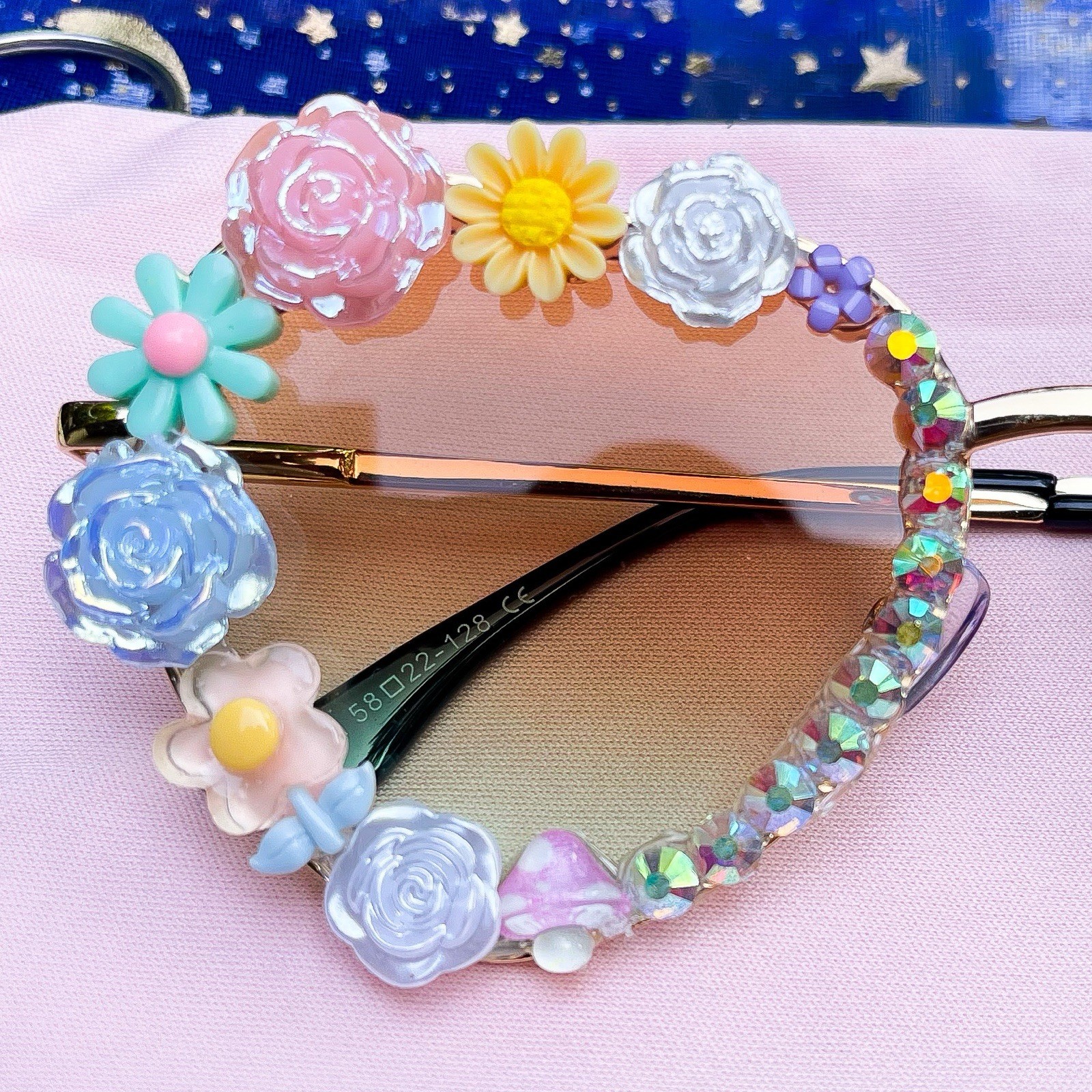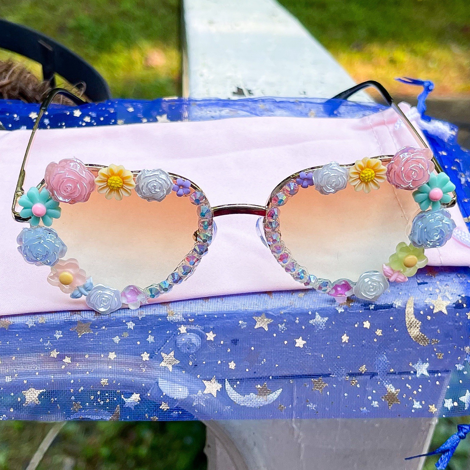 Handmade Boho Festival Sunglasses Pastel Flowers Hippie Floral Bling Glasses