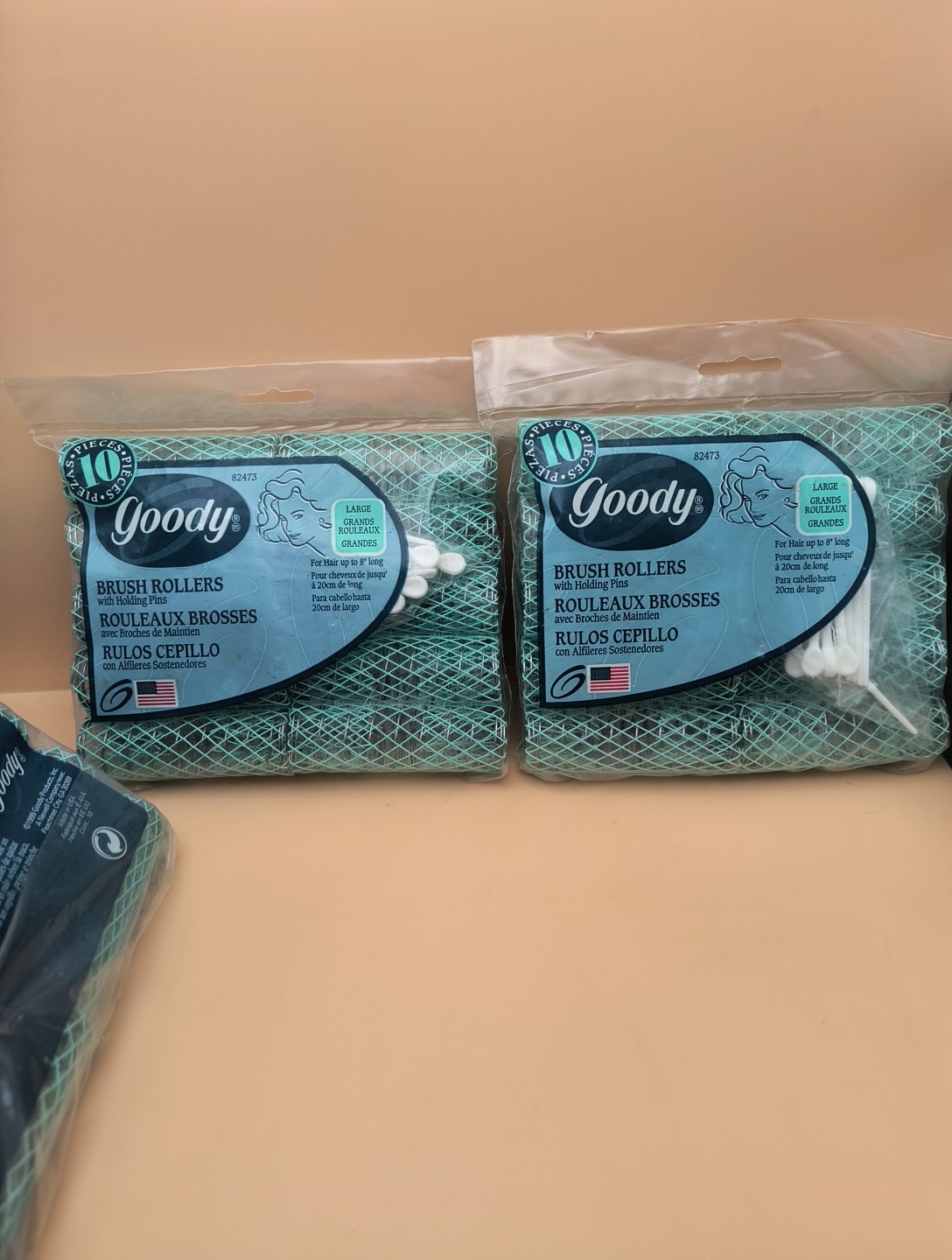 Set Of 4 Vintage Goody Green Brush rollers w/pins Large NIP 10 Rollers 82473