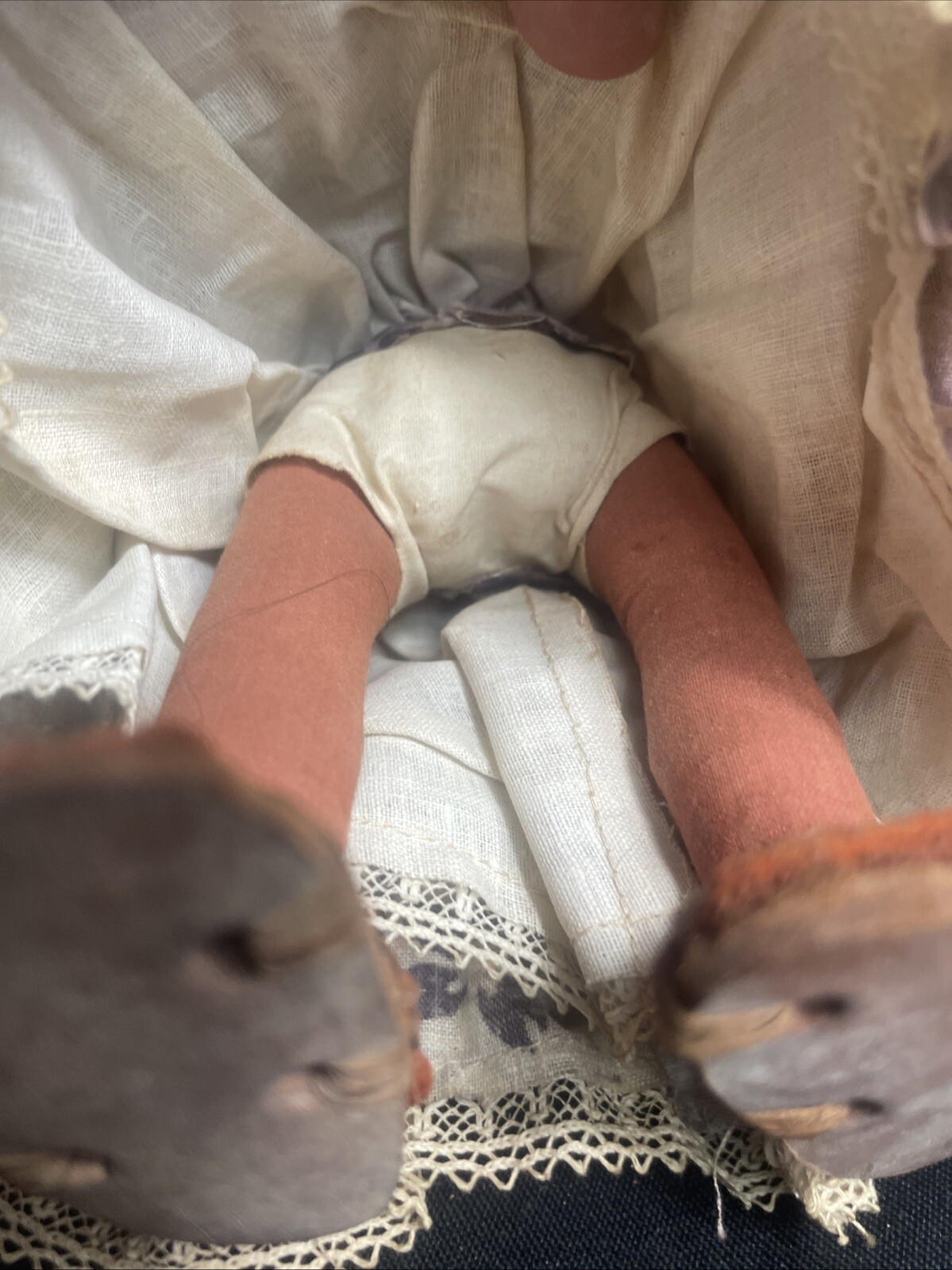 как выглядит Vtg Mexican Folk Art Hand-Painted Doll Woman W/sandals Jugs Oilcloth 10 фото