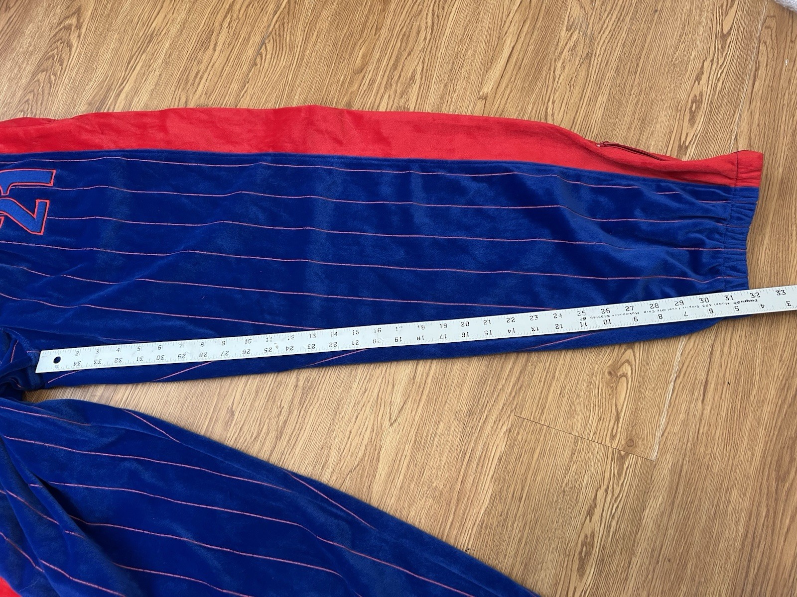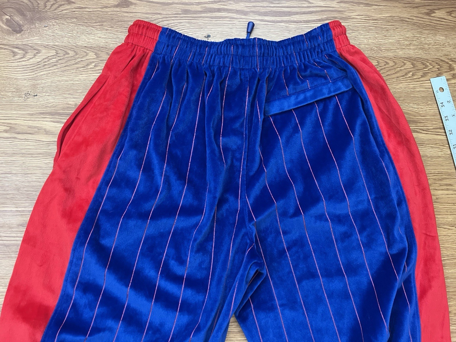 как выглядит Vtg Russo Wear Russo Rucci Velvet Track Pants Blue Striped Red Street Wear Sz L фото