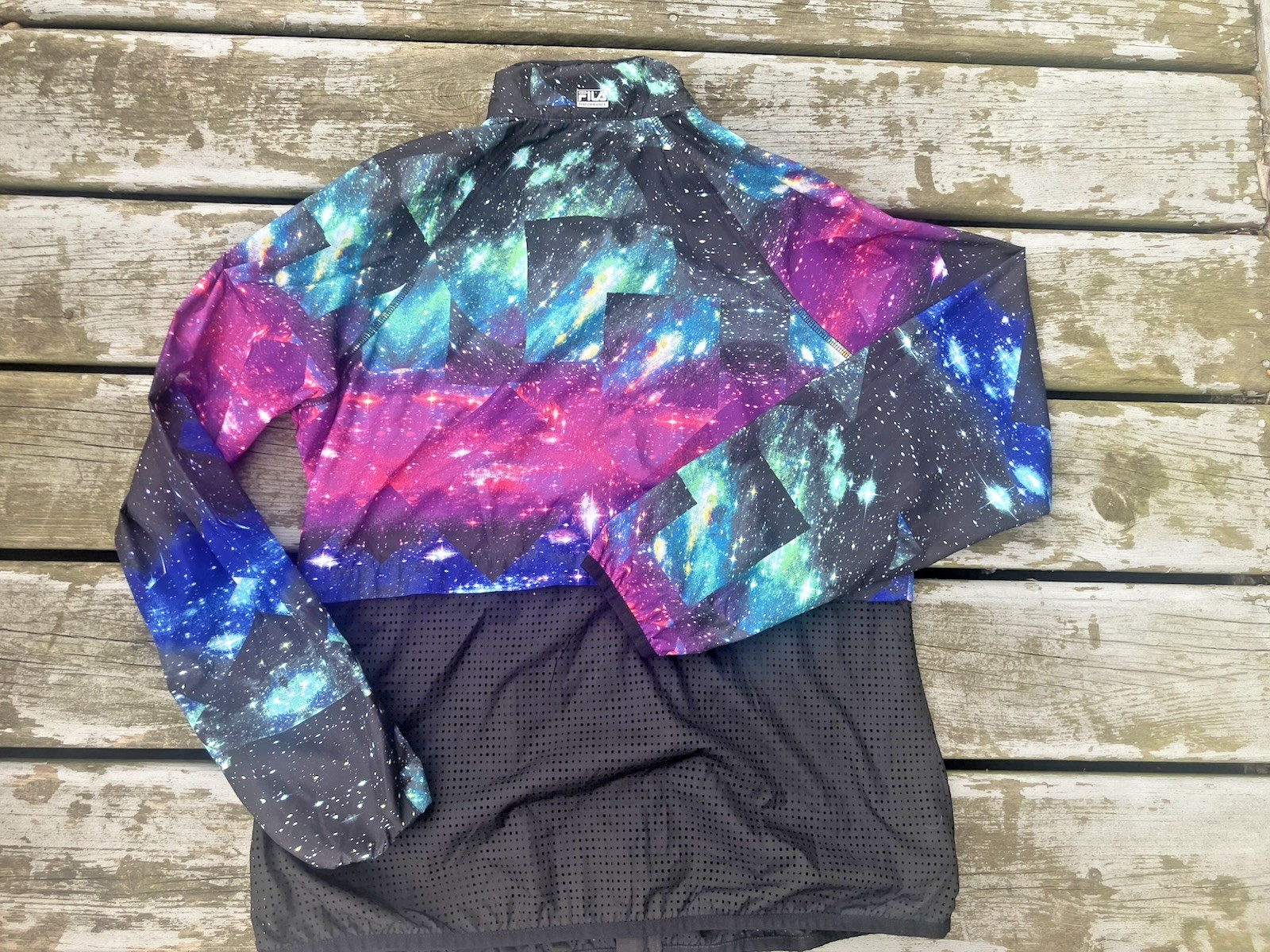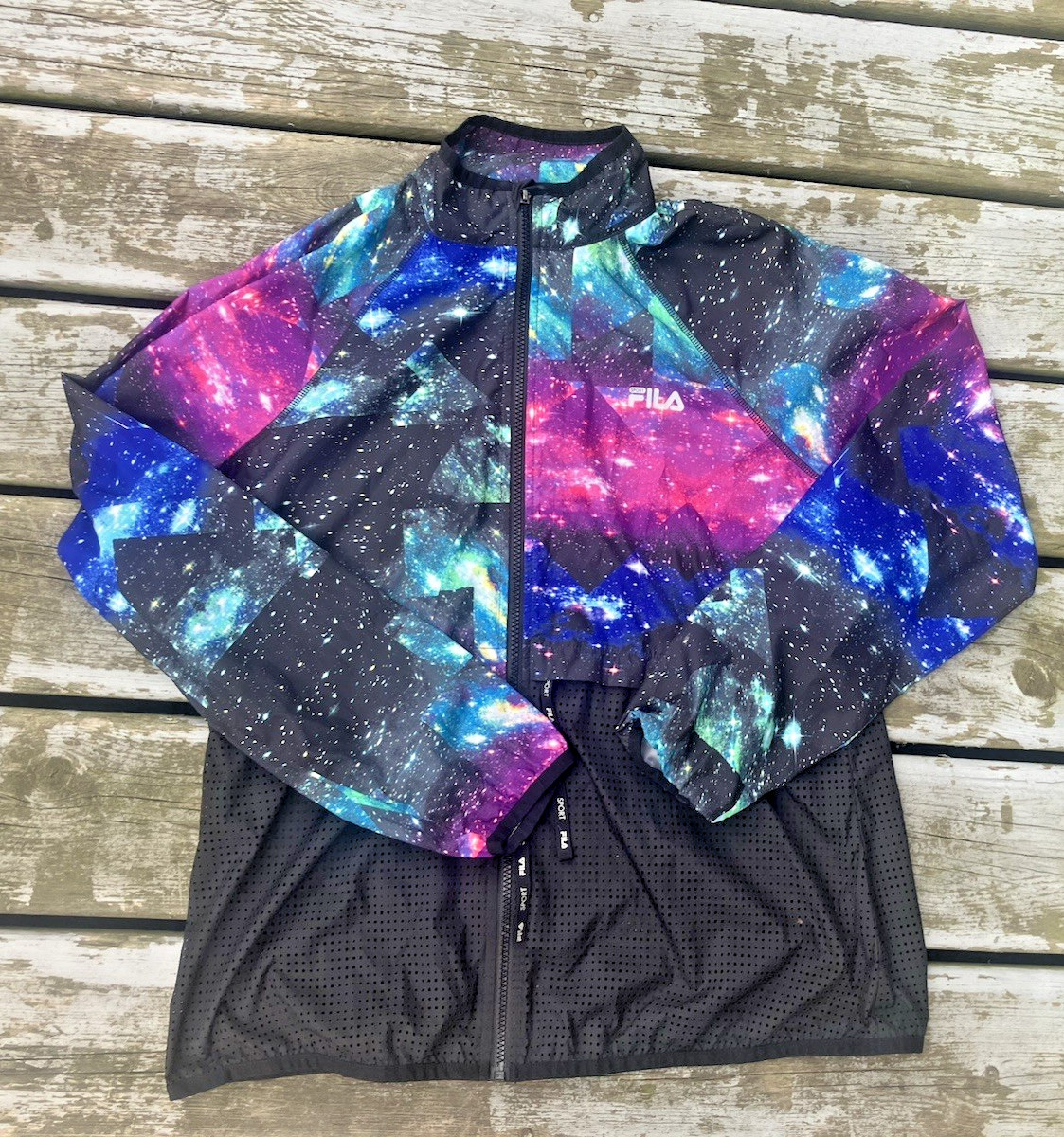 Fila Women's Galaxy Print Full-Zip Drawstring Waist Windbreaker Jacket LG, mint
