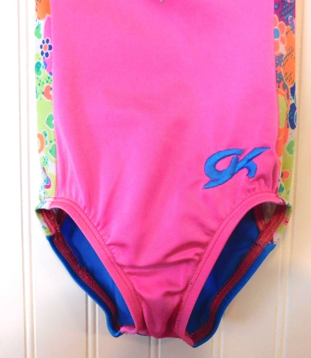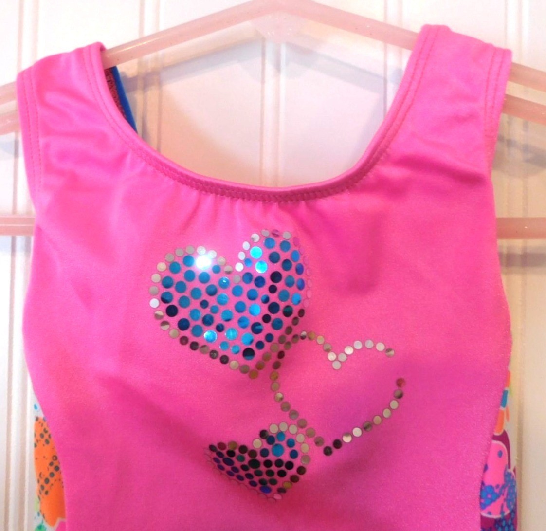 GK Ekite Toddler Size Leotard Pink and Blue Heart Sleeveless Gymnastics Dance