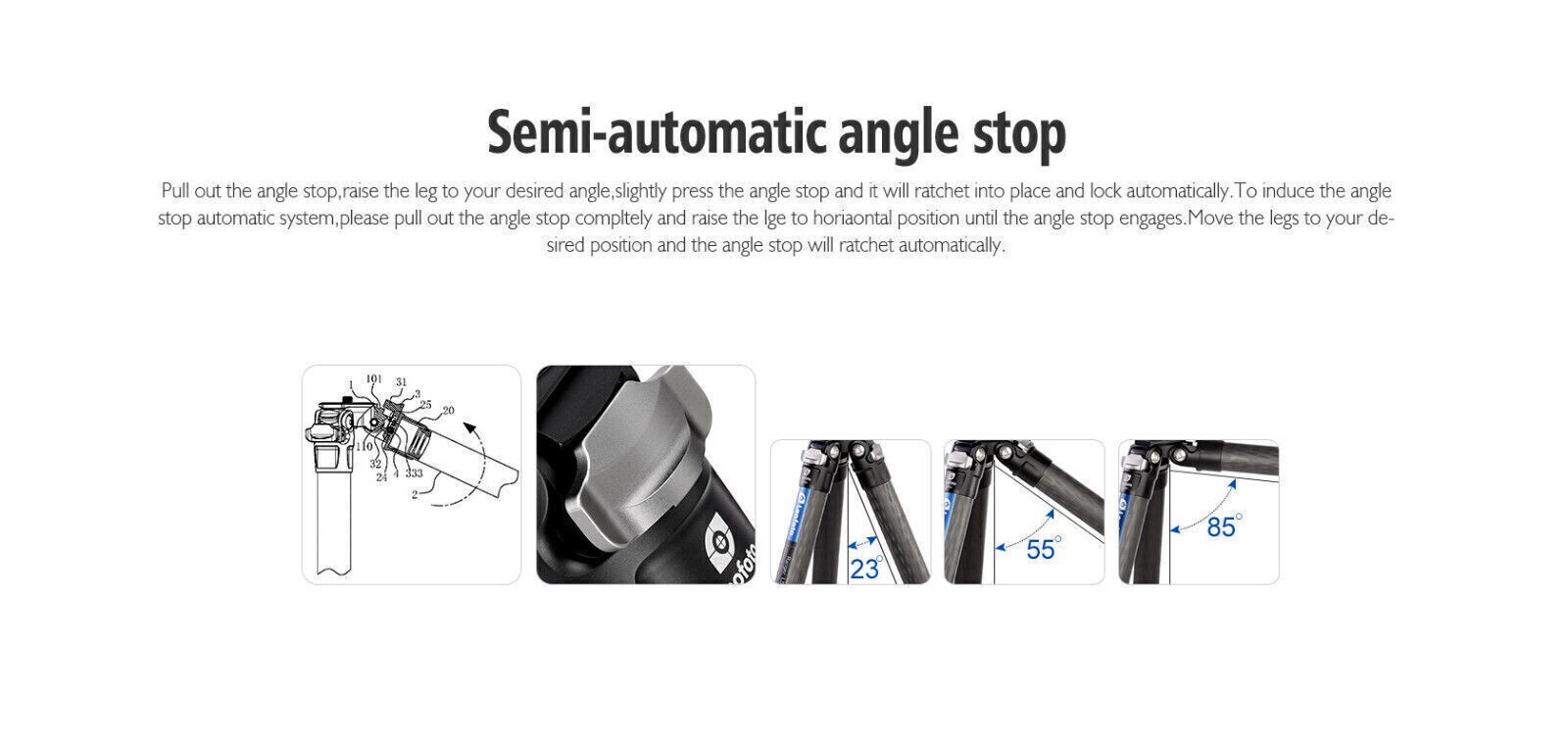 Особенности: 360 Degree Rotation, Adjustable Legs, Automatic Lock, Foldable, Leg Angle Adjustment, Quick Release, Rubber Foot, With Case