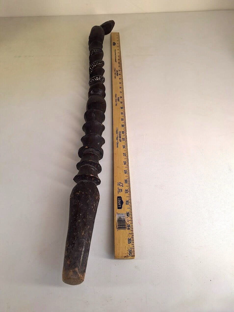 Antique Walking Stick Folk Art Hand Carved Wooden Walking Cane w/ Wrapped Snake