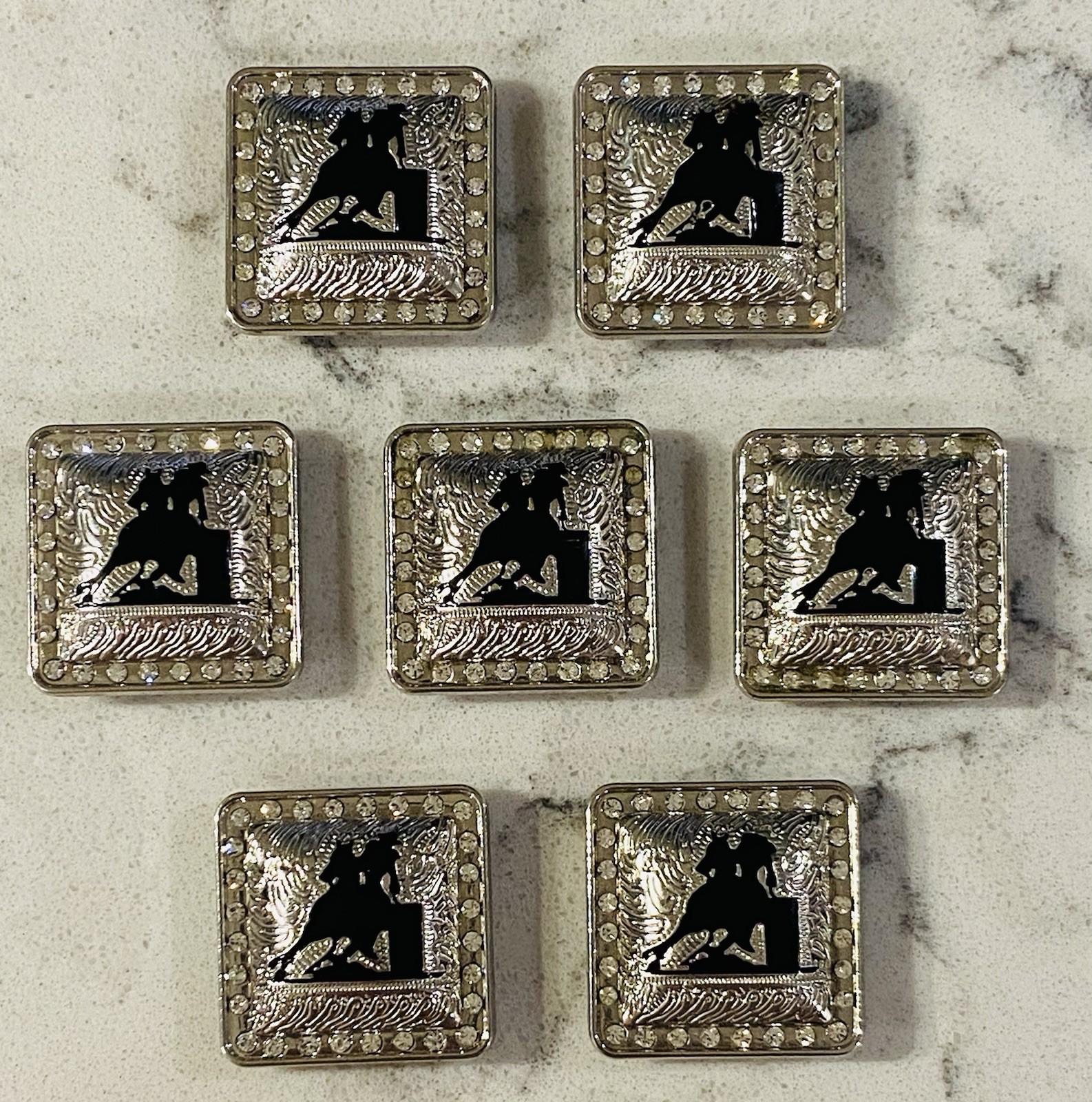 11 Pc. Western Silver Tone Belt Buckle Set for 1 1/2 Belt 339 RHINESTONES TOTAL