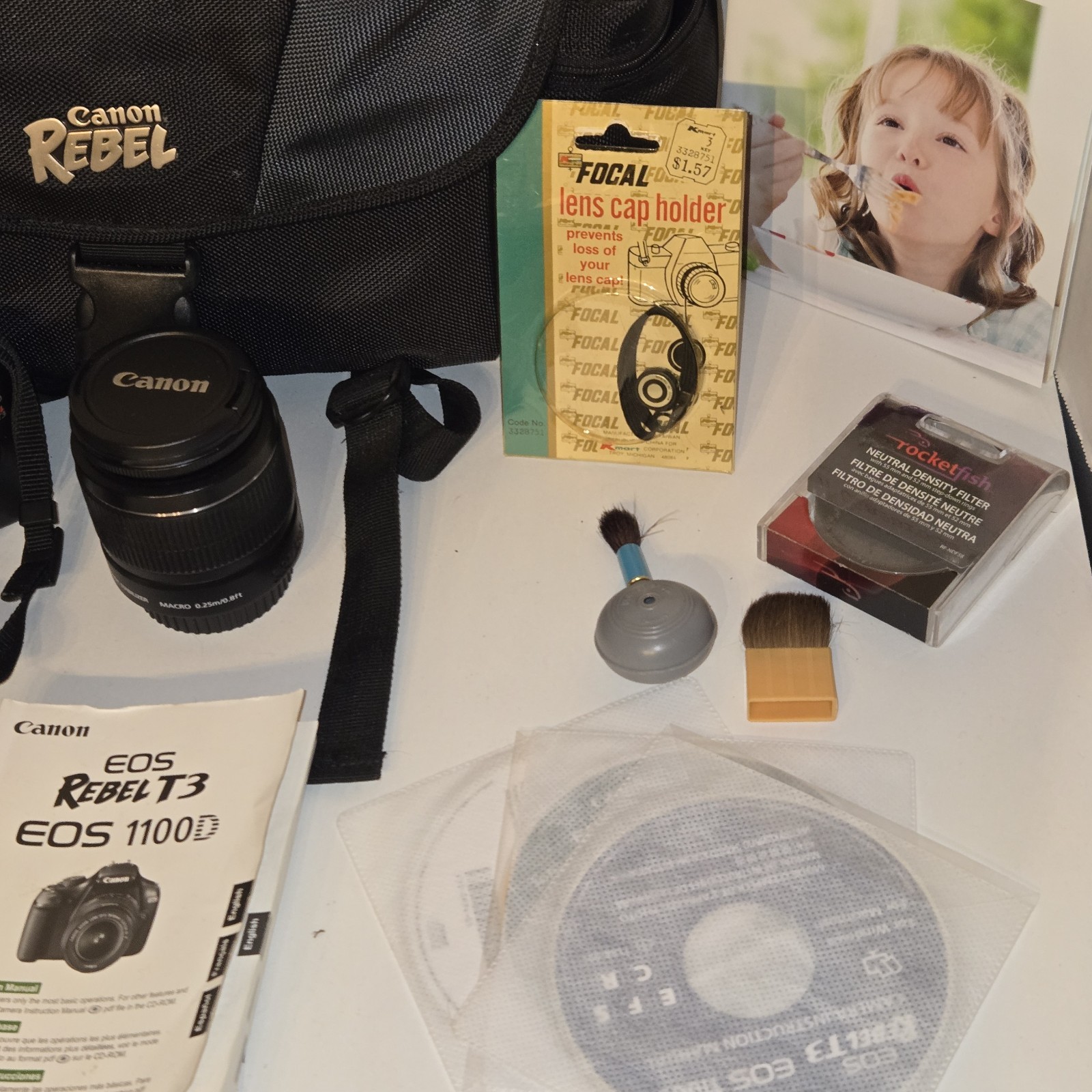 как выглядит Canon EOS Rebel T3 1100D Camera with 2 Lens, Battery, Charger, Bag, Manuels фото