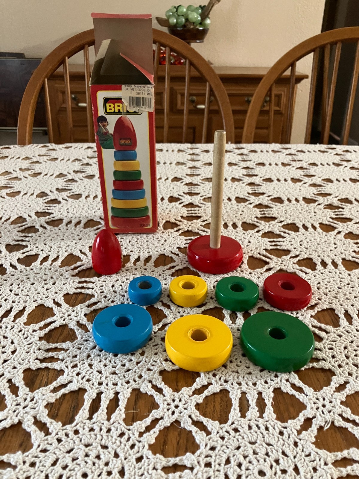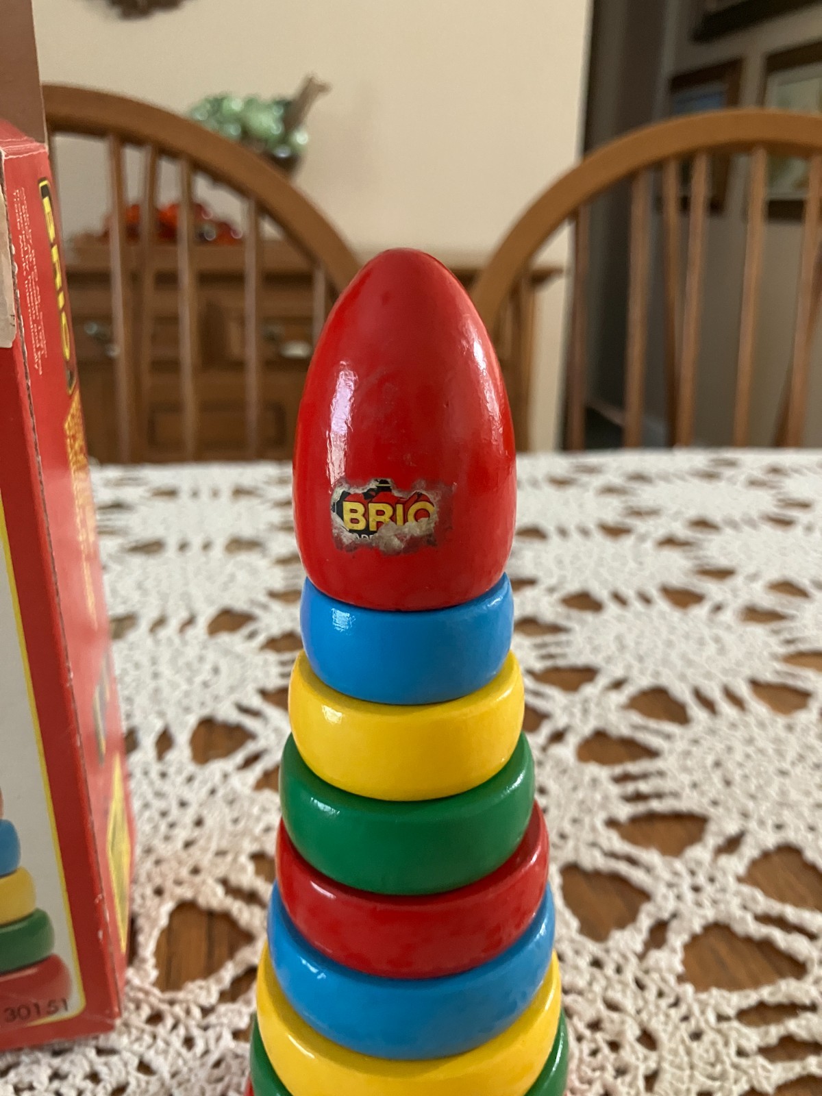 Vintage 1991 Sweden Brio Wood Ringpyramid Ring Pyramid Stacking Toy