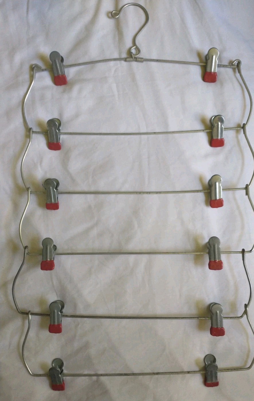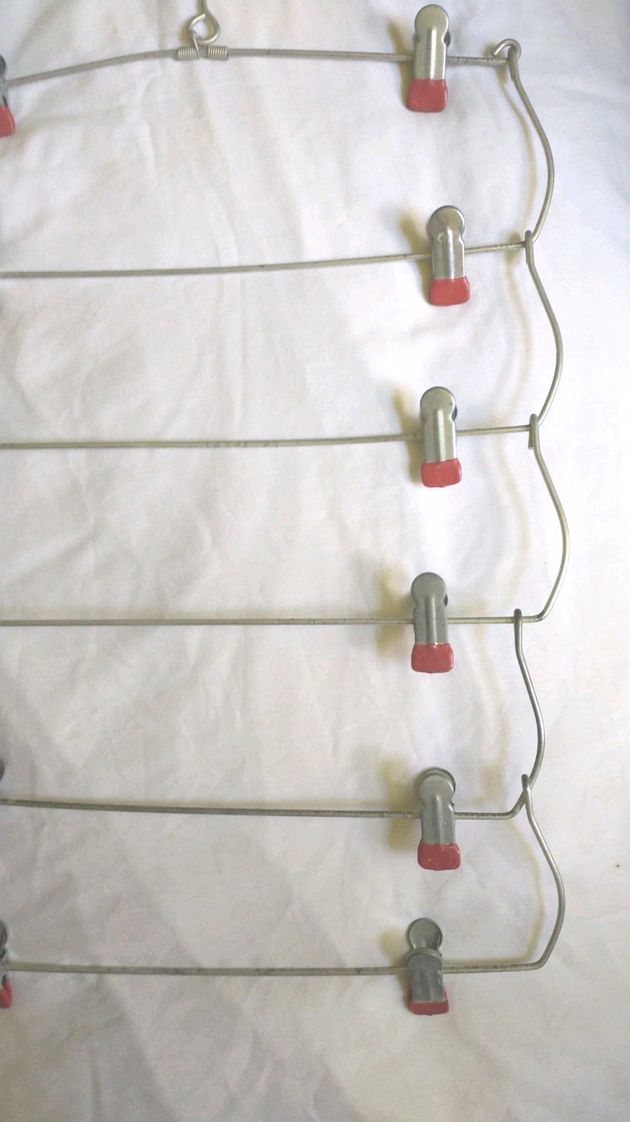 как выглядит Lot of 2 VTG MCM Folding 6 Tier Skirt Pants Metal Hangers фото
