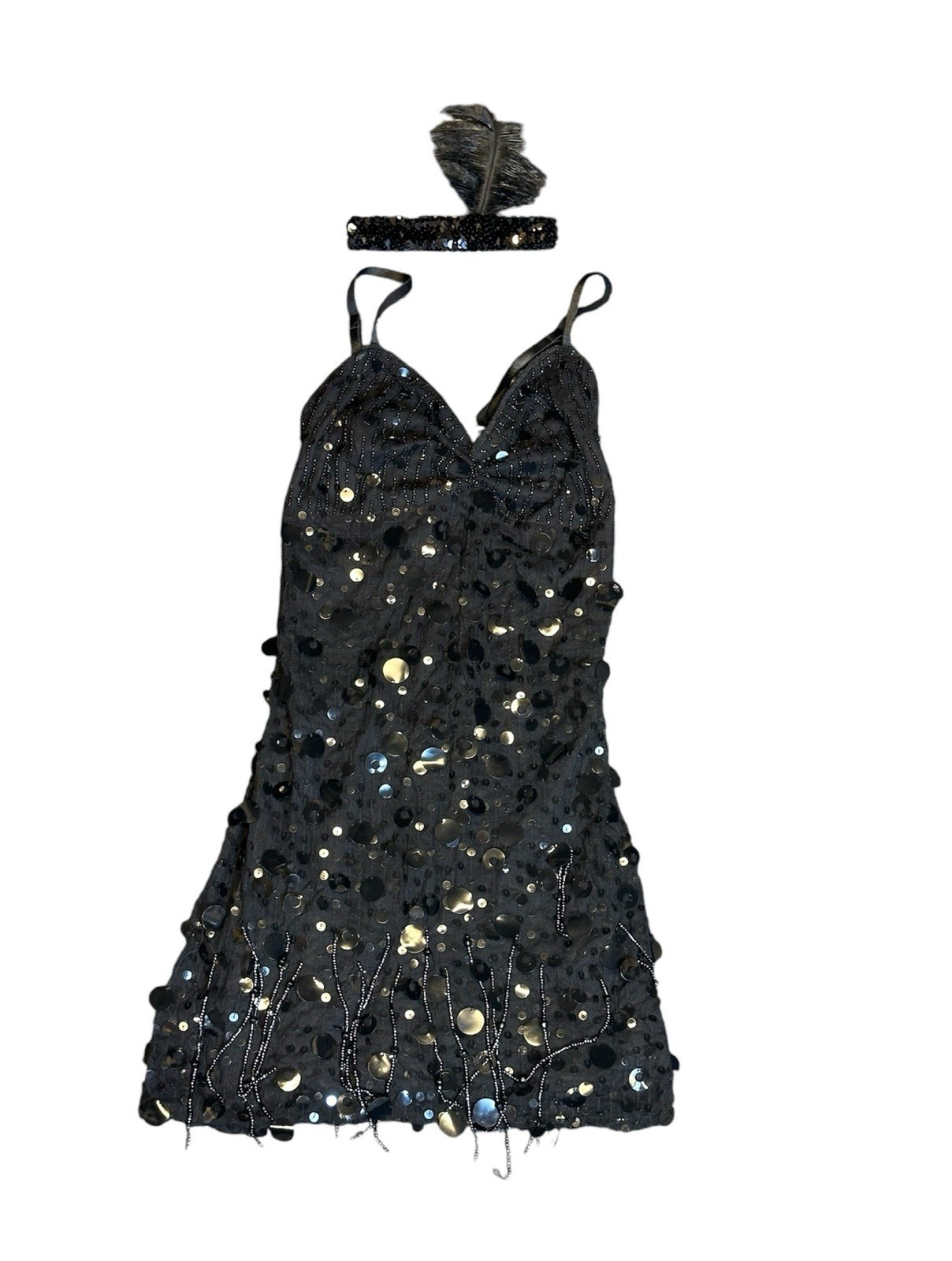 Elegant Flapper Girl Black Sequin Dress Halloween Costume fits a small/medium