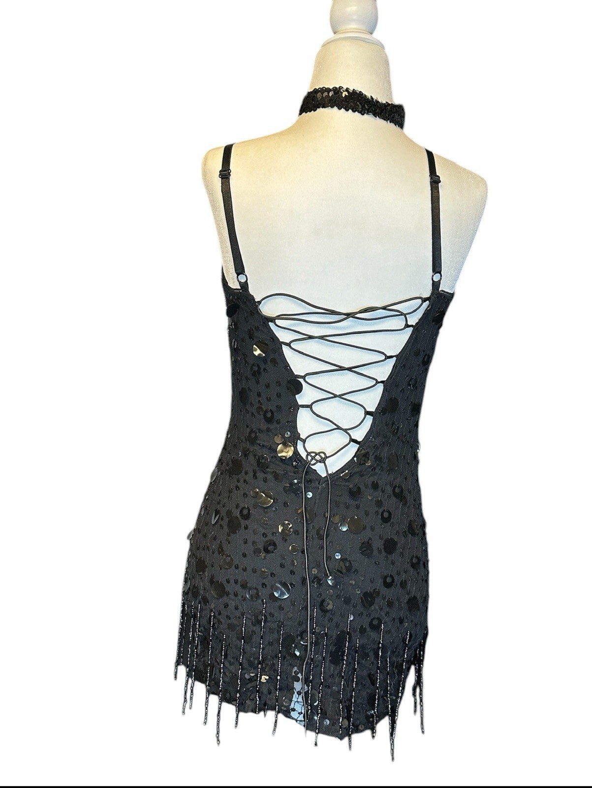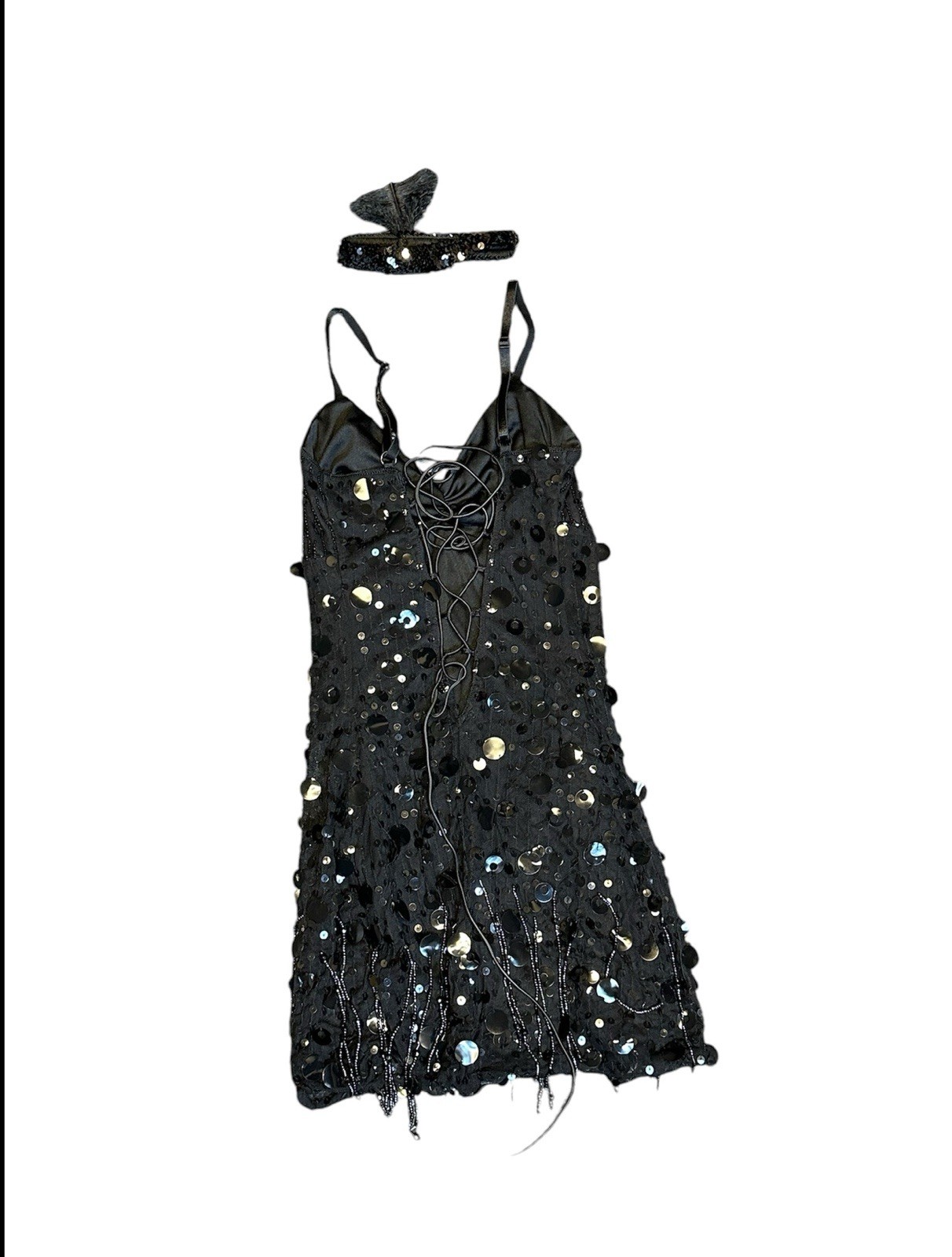 как выглядит Elegant Flapper Girl Black Sequin Dress Halloween Costume fits a small/medium фото