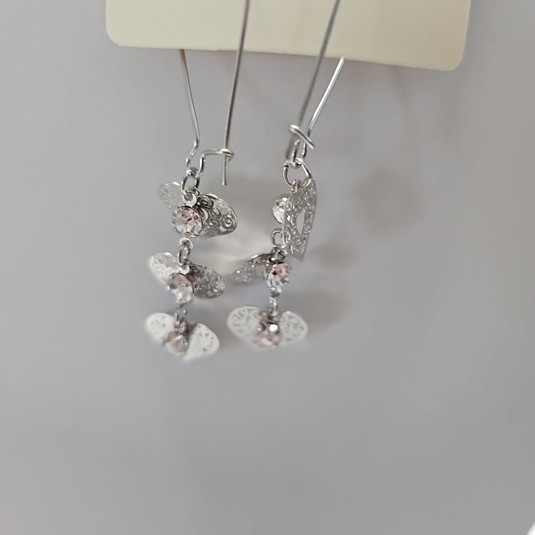 как выглядит Earrings Silver Tone Color Threader 2.75" Dangle Leverback Heart Shaped фото