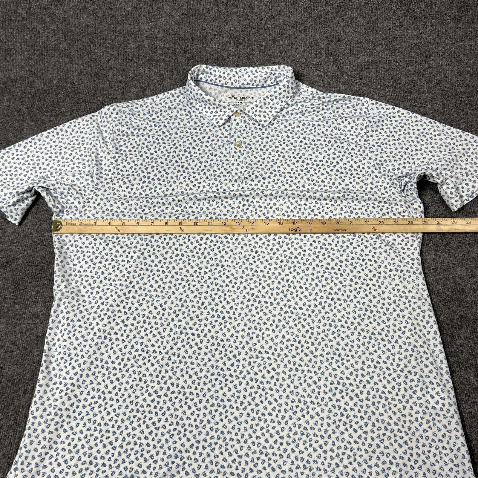 как выглядит Peter Millar Polo Shirt Mens 2XL White Blue Seaside Performance Golf Casual фото