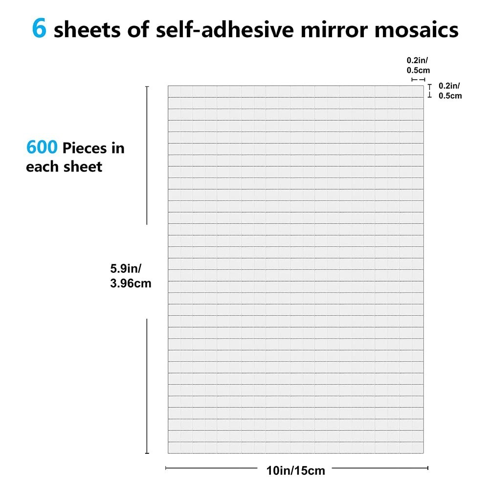 Self-Adhesive Real Glass Craft Mini Square Mirrors Mosaic Tiles 5 x 5mm,6