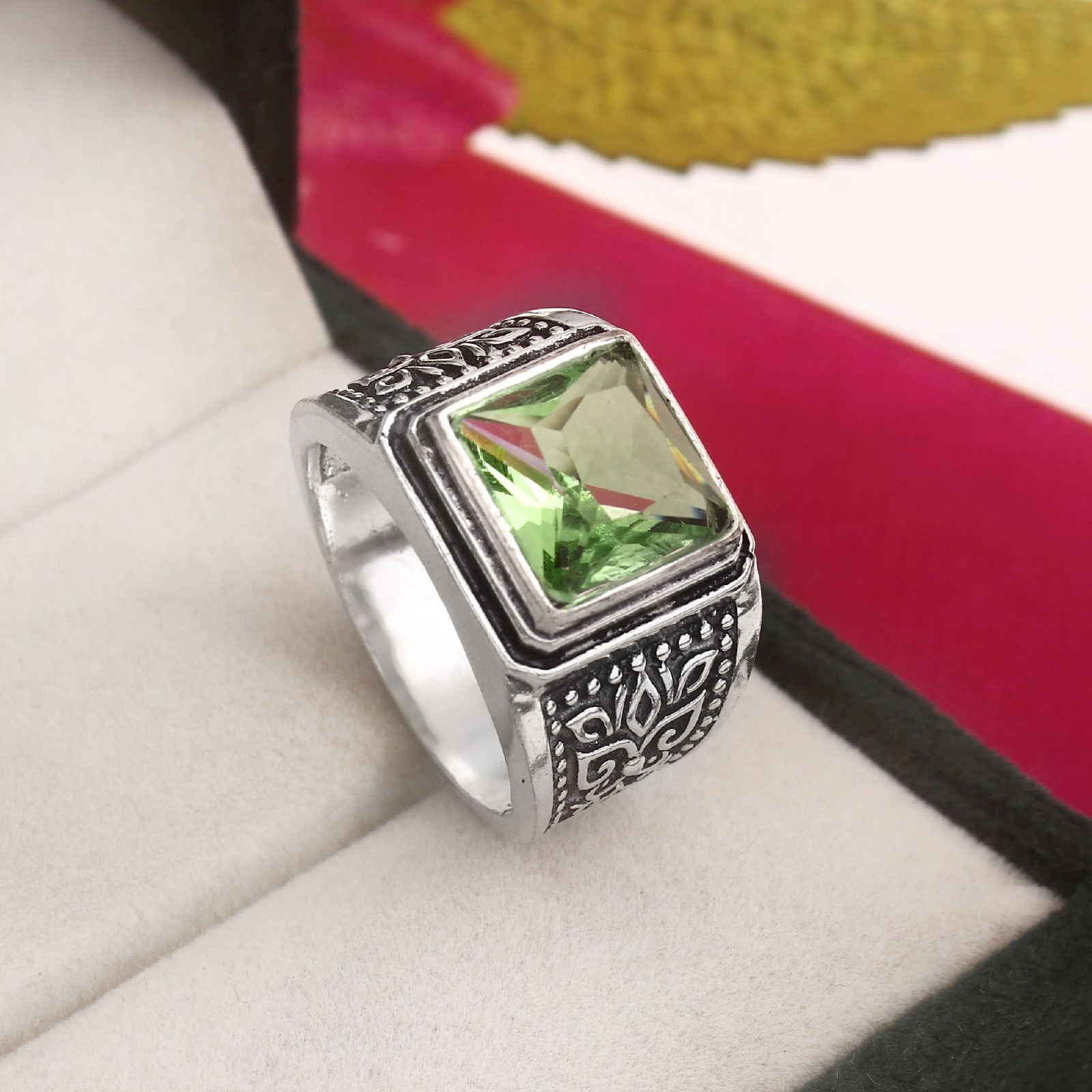 925 Sterling Silver Green Peridot Gemstone Jewelry Ring All size US