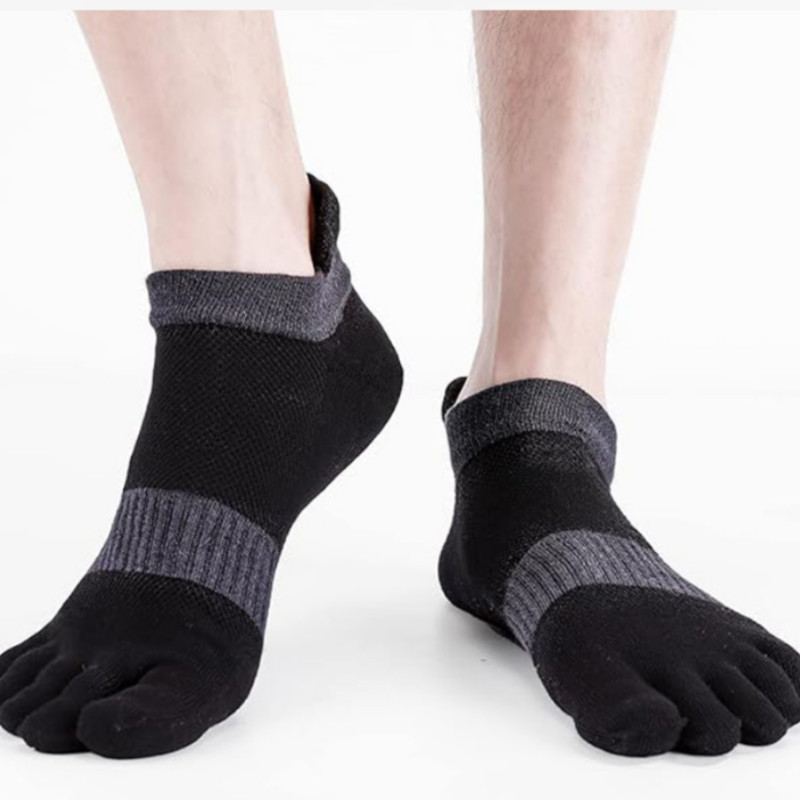Men Five Finger Toe Low Cut Sport Solid Athletic Ankle Work Cotton Socks 6 Pairs