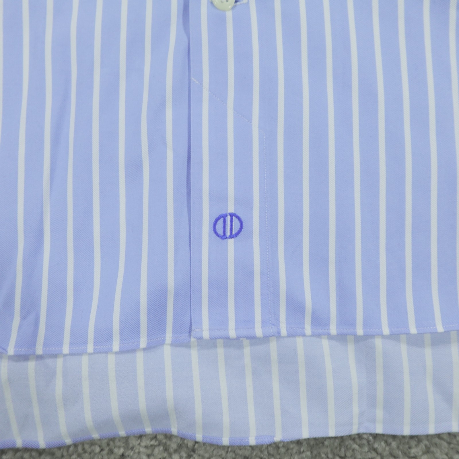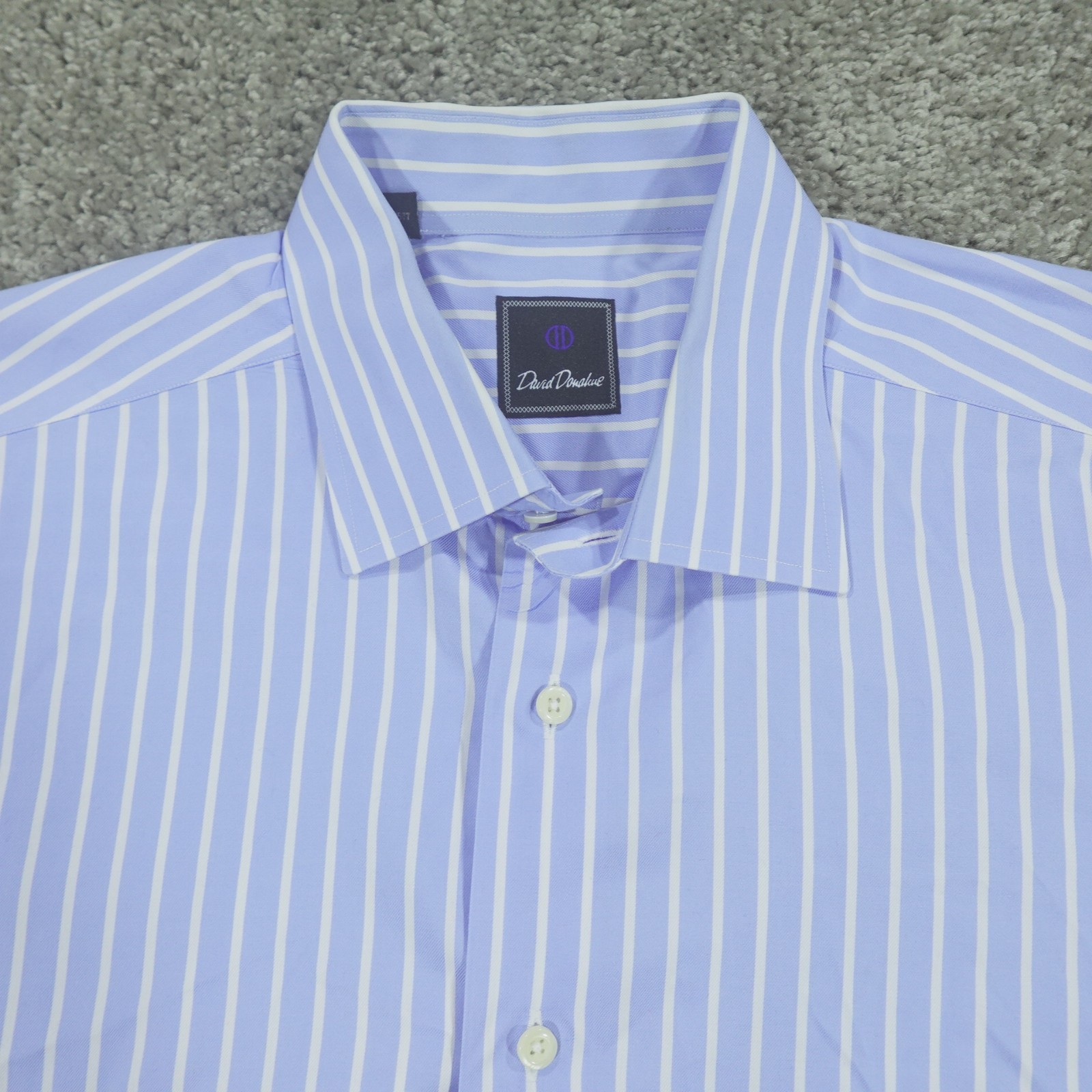 как выглядит David Donahue Dress Shirt Mens 17 34/35 Button Up Regular Fit Striped Blue фото