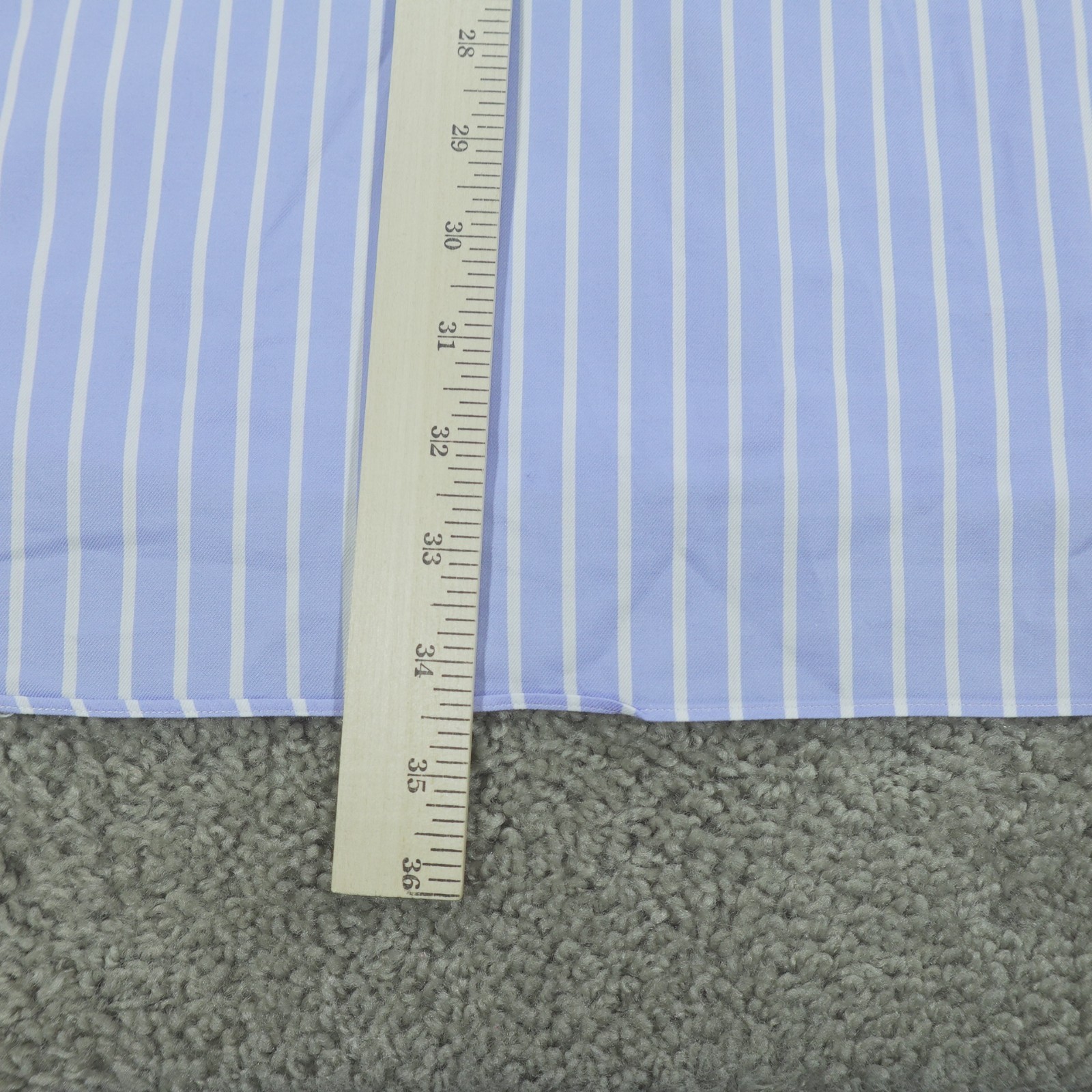David Donahue Dress Shirt Mens 17 34/35 Button Up Regular Fit Striped Blue